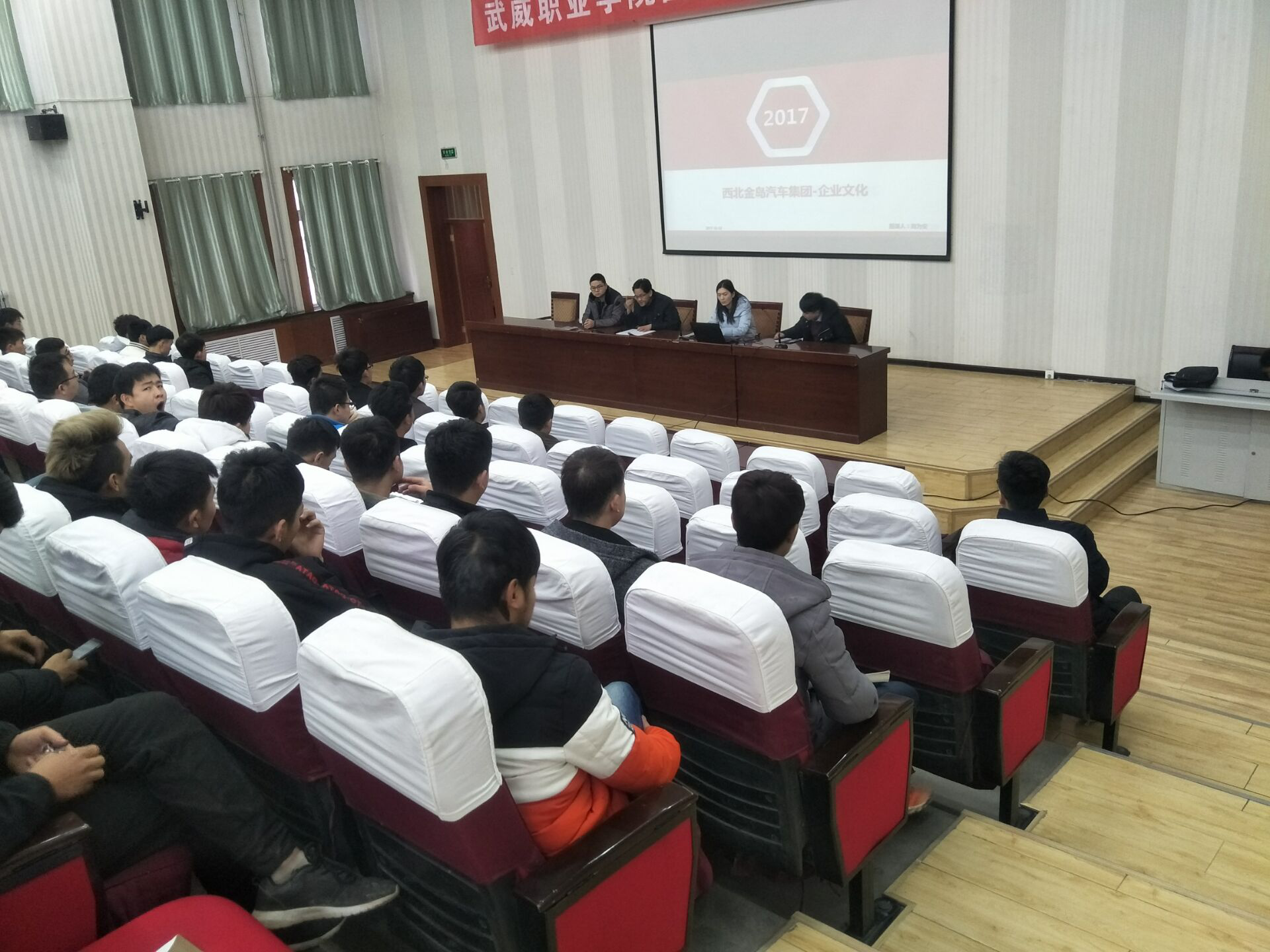2017年12月12日,在尚德樓正德廳,由金島汽車(chē)集團(tuán)西北金島分公司人事部謝經(jīng)理一行來(lái)我系做專(zhuān)場(chǎng)招聘宣講會(huì)。招聘會(huì)由汽車(chē)工程系黨總支書(shū)記邸光才主持,中銳教育集團(tuán)武威項(xiàng)目部經(jīng)理?xiàng)钼x及2018屆畢業(yè)生參加了本次宣講會(huì)。