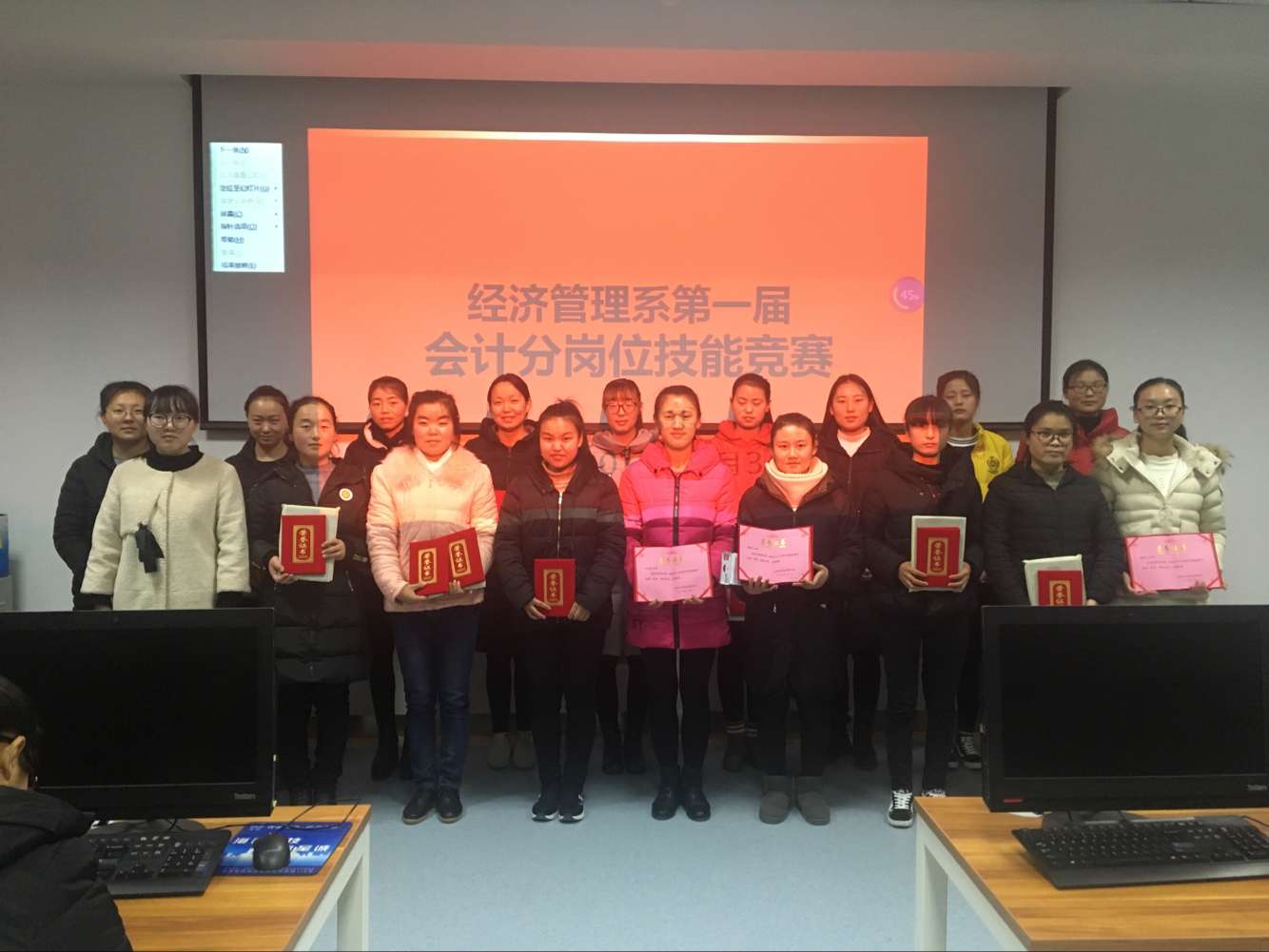 為進(jìn)一步提高會計專業(yè)學(xué)生的實踐操作技能,培養(yǎng)學(xué)生的學(xué)習(xí)興趣,調(diào)動學(xué)習(xí)積極性,推動我系實踐教學(xué)改革,檢驗教學(xué)成果,經(jīng)濟(jì)管理系于2018年 1月3日舉辦了第一屆會計手工分崗位技能大賽。