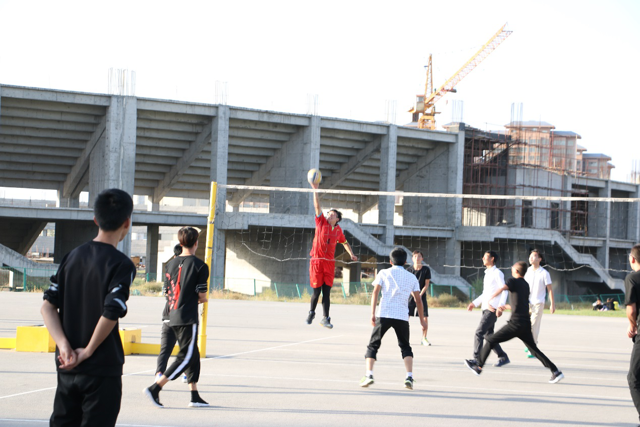 此次比賽有男子籃球、男子排球、女子籃球、女子排球共四各項(xiàng)目。經(jīng)過第一輪的淘汰賽,有八支代表隊(duì)晉級(jí)。9月25日下午,晉級(jí)的八支代表隊(duì)分別進(jìn)行了男子、女子籃球排球賽的冠亞軍爭奪賽?;@球場上,隨著裁判員一聲哨響并將籃球拋向上空,兩方隊(duì)員奮力躍起,激烈的賽事正式開始。決戰(zhàn)雙方的隊(duì)員斗智斗勇,比分不斷上升,賽事異常激烈,引得全場歡聲雷動(dòng)。與此同時(shí),排球總決賽也在新排球場上展開。