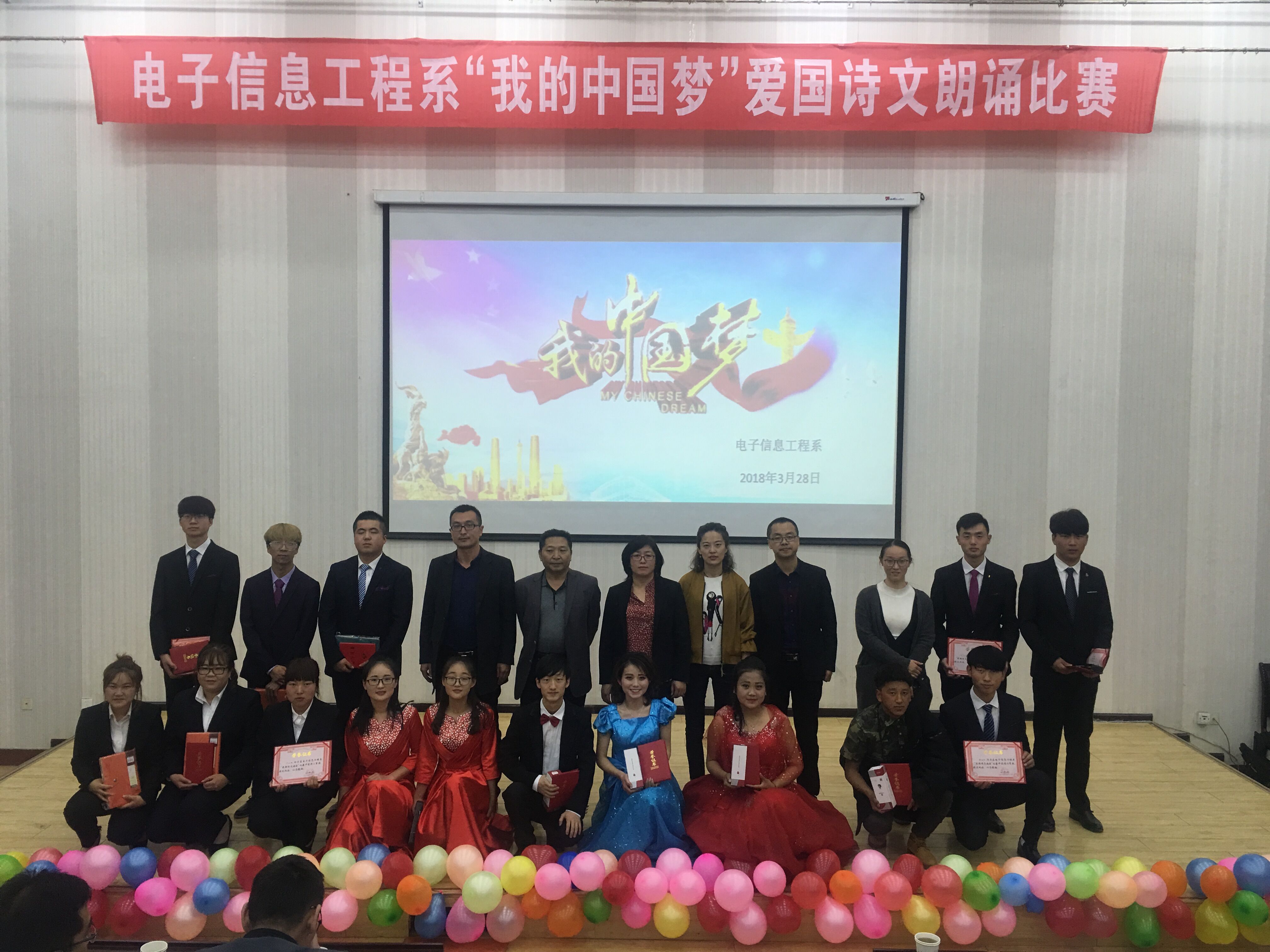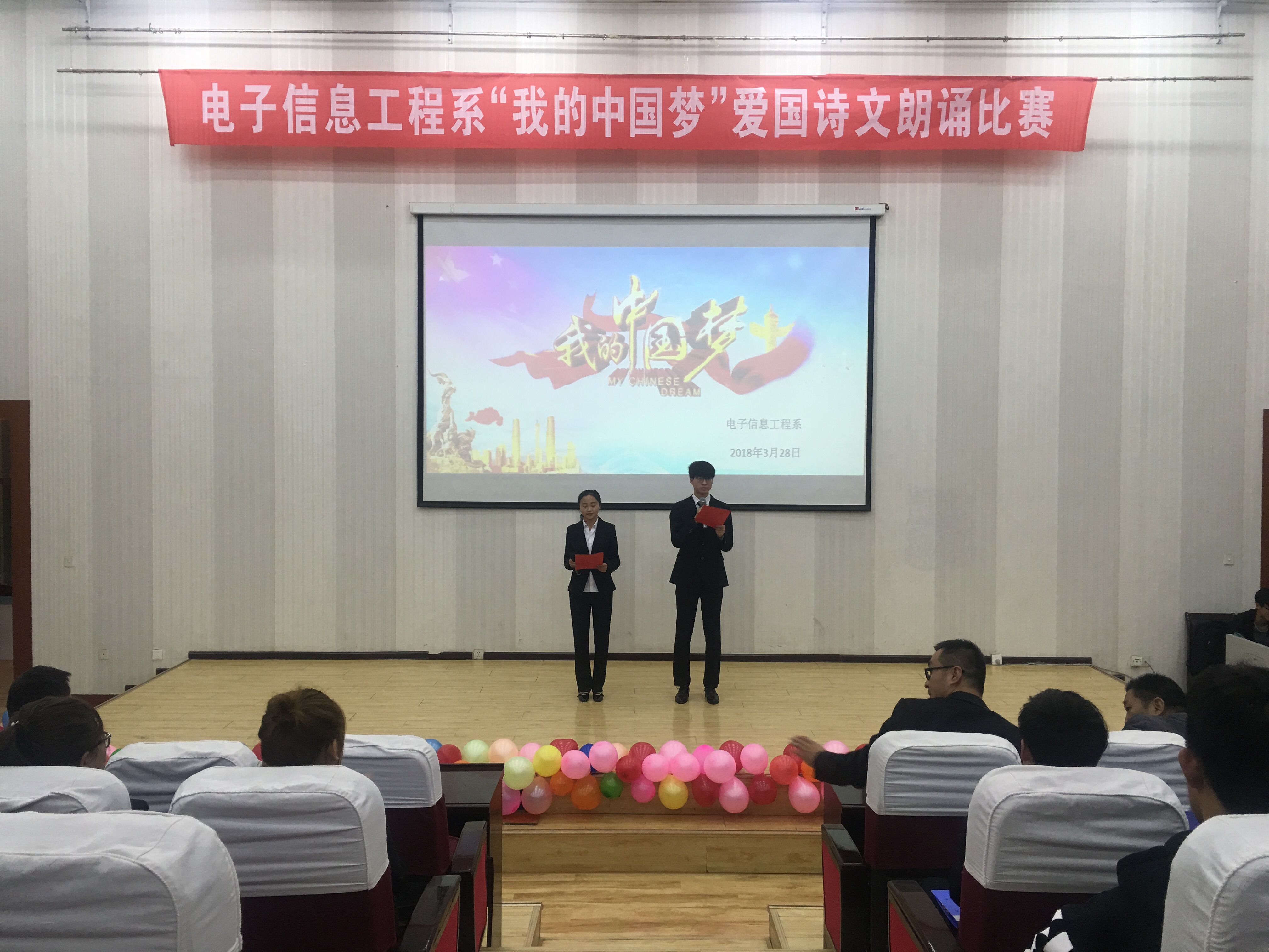 為進(jìn)一步弘揚(yáng)和培育社會主義核心價值觀,引導(dǎo)學(xué)生實(shí)現(xiàn)國家富強(qiáng)、民族復(fù)興的偉大“中國夢”而發(fā)憤圖強(qiáng)、勇?lián)厝危?/span>激勵學(xué)生通過誦讀經(jīng)典來繼承傳統(tǒng),增強(qiáng)學(xué)生的愛國情感。3月28日,電子信息工程系在正德廳舉辦了“我的中國夢”愛國詩文朗誦比賽。電子信息工程系黨總支書記袁青年、系主任李亞梅、全體班主任及學(xué)生觀看了比賽。