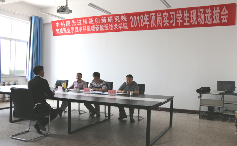 ? ? ? ?2018年6月21日,中國科學院先進核能創(chuàng)新研究院在學院舉行了2018年頂崗實習學生現(xiàn)場選撥會,由中科院先進核能創(chuàng)新研究院綜合管理部常務副主任王納秀、熔鹽機械部熱工組組長王曉和中科武威新能源研究所所長朱智勇組成的專家組對能源類專業(yè)和機械類專業(yè)學生進行了現(xiàn)場面試,遴選出的14名同學將于7月份前往中國科學院先進核能創(chuàng)新研究院進行為期一年的專業(yè)頂崗實習,他們將在中科院先進核能創(chuàng)新研究院專家教授的帶領下,通過一對一指導和崗位輪訓等形式全面系統(tǒng)完成頂崗實習,了解行業(yè)技術需求和技術最新進展,掌握更多的專業(yè)知識和實踐技能,感受頂級科研院所深厚的科技氛圍和文化氛圍,全面提升專業(yè)水平和綜合素養(yǎng),為成功走向社會奠定良好的基礎。