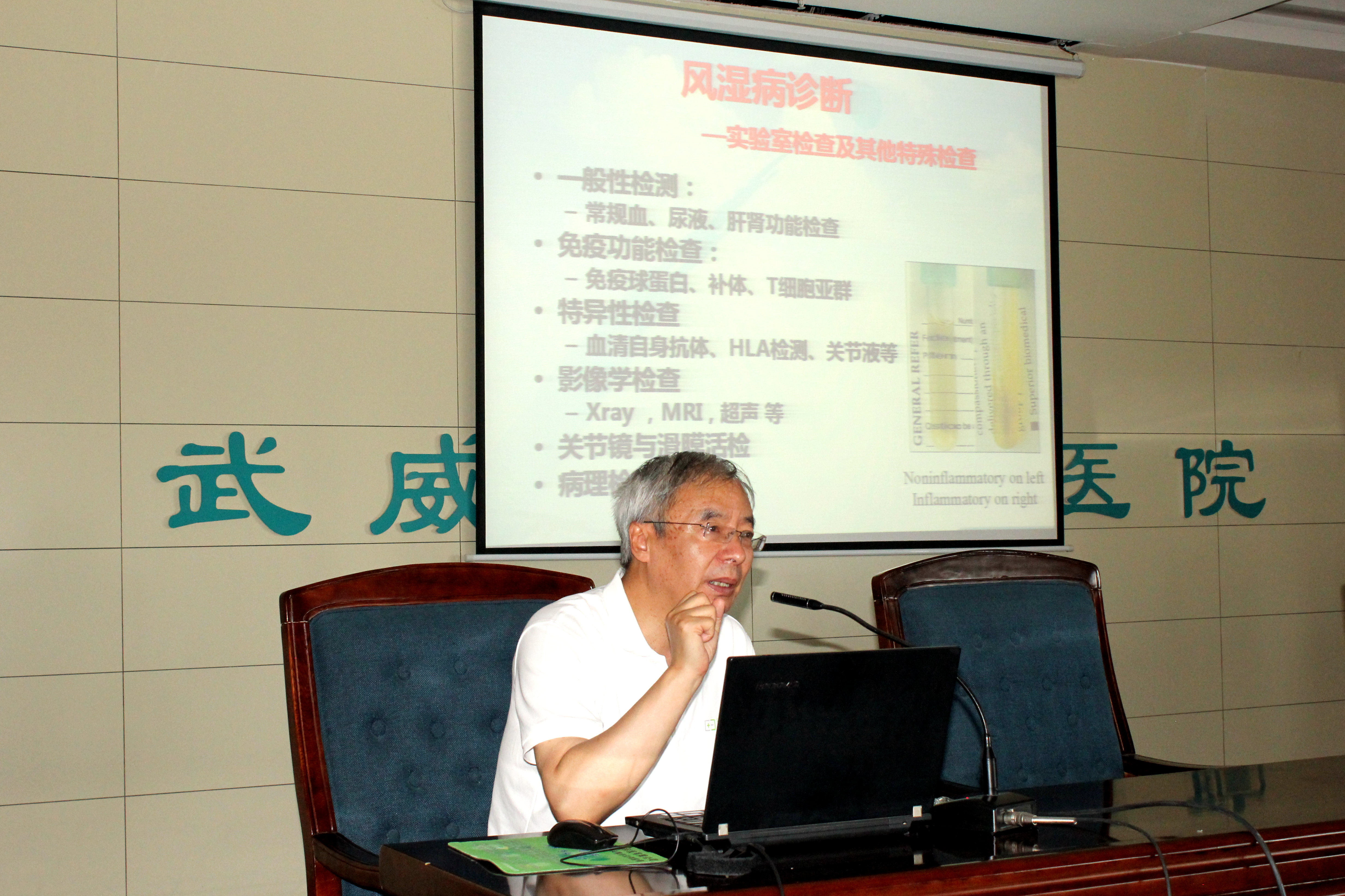 為提高醫(yī)務(wù)人員診治風(fēng)濕病的技術(shù)水平,學(xué)院直屬附屬醫(yī)院于6月29日下午,在內(nèi)科七樓會議室舉辦風(fēng)濕病診治學(xué)術(shù)報告會。醫(yī)院邀請?zhí)m大二院著名風(fēng)濕病專家王軼作“風(fēng)濕免疫實(shí)驗室檢查”為題的學(xué)術(shù)報告,副院長張仁德主持會議,醫(yī)院各科室百余名醫(yī)療骨干參加學(xué)術(shù)會議聆聽報告。