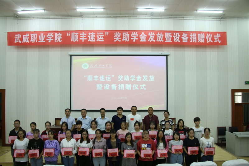 6月26日,武威職業(yè)學(xué)院“順豐速運(yùn)”獎(jiǎng)助學(xué)金發(fā)放暨設(shè)備捐贈(zèng)儀式在學(xué)院正德廳舉行。江蘇順豐速運(yùn)江蘇順豐通訊服務(wù)有限公司副總經(jīng)理張輝華先生,武威職業(yè)學(xué)院黨委委員、副院長(zhǎng)王永緒同志、江蘇順豐通訊服務(wù)有限公司人力資源部經(jīng)理孫潞、項(xiàng)目經(jīng)理高國(guó)軍、招聘經(jīng)理明微、經(jīng)濟(jì)管理系書記潘從民、主任張伯成、物流專業(yè)教師代表和物流專業(yè)16、17級(jí)全體同學(xué)及相關(guān)專業(yè)學(xué)生代表近200人參加本次儀式。發(fā)放儀式由潘從民主持。