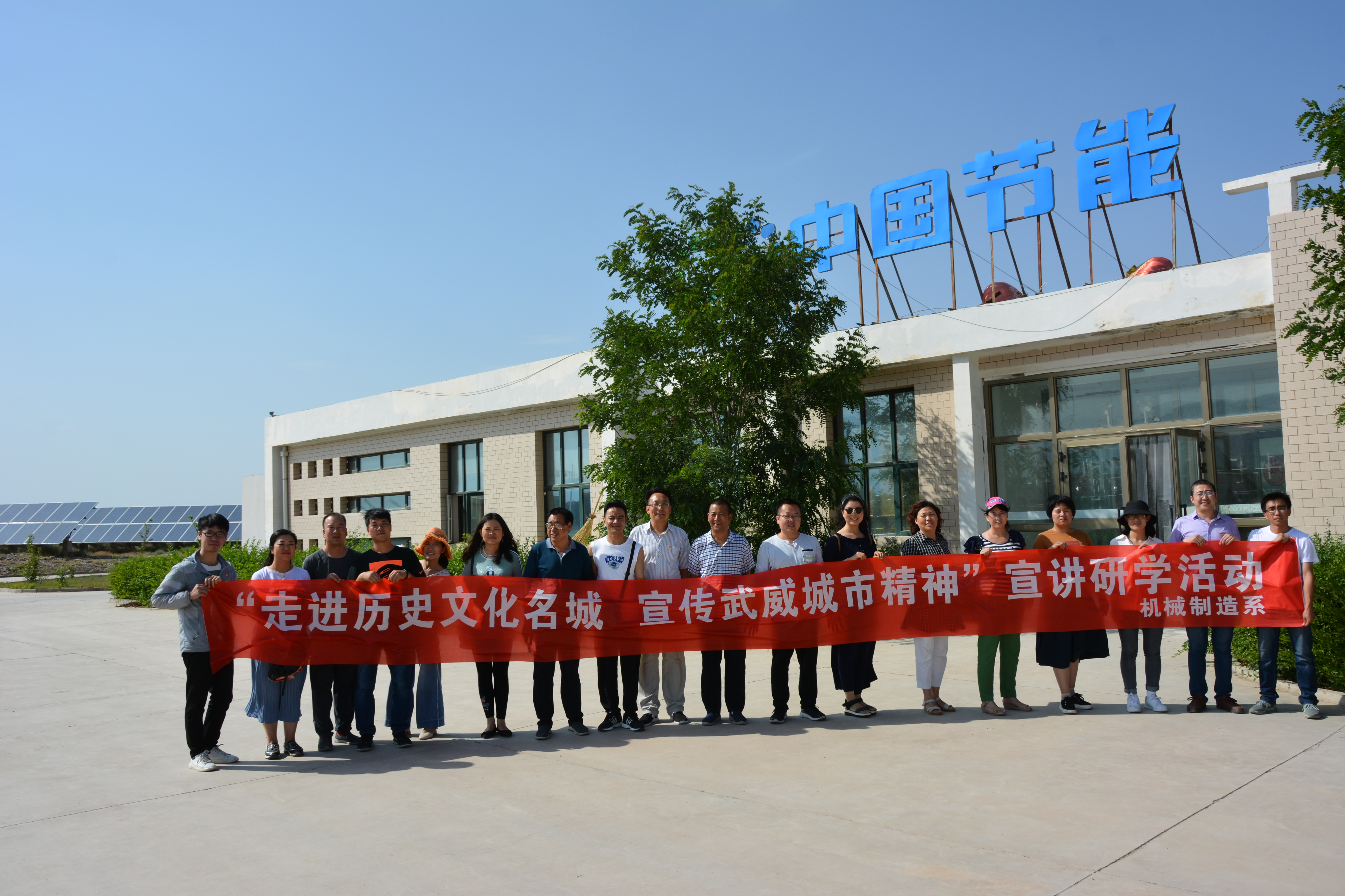 為加強(qiáng)對(duì)武威城市精神的宣傳詮釋力度,感受“天馬星空,自在武威”的文化旅游形象主題宣傳口號(hào),深入挖掘武威歷史文化名城內(nèi)涵,探索武威文化旅游融合發(fā)展的新思路、新方法、新途徑,提高學(xué)院服務(wù)社會(huì)的功能,豐富教職工的精神文化生活。機(jī)械制造系全體教師赴武威金太陽(yáng)新能源高新技術(shù)集中區(qū)開(kāi)展“走進(jìn)歷史文化名城,宣傳武威城市精神”宣講研學(xué)活動(dòng)。