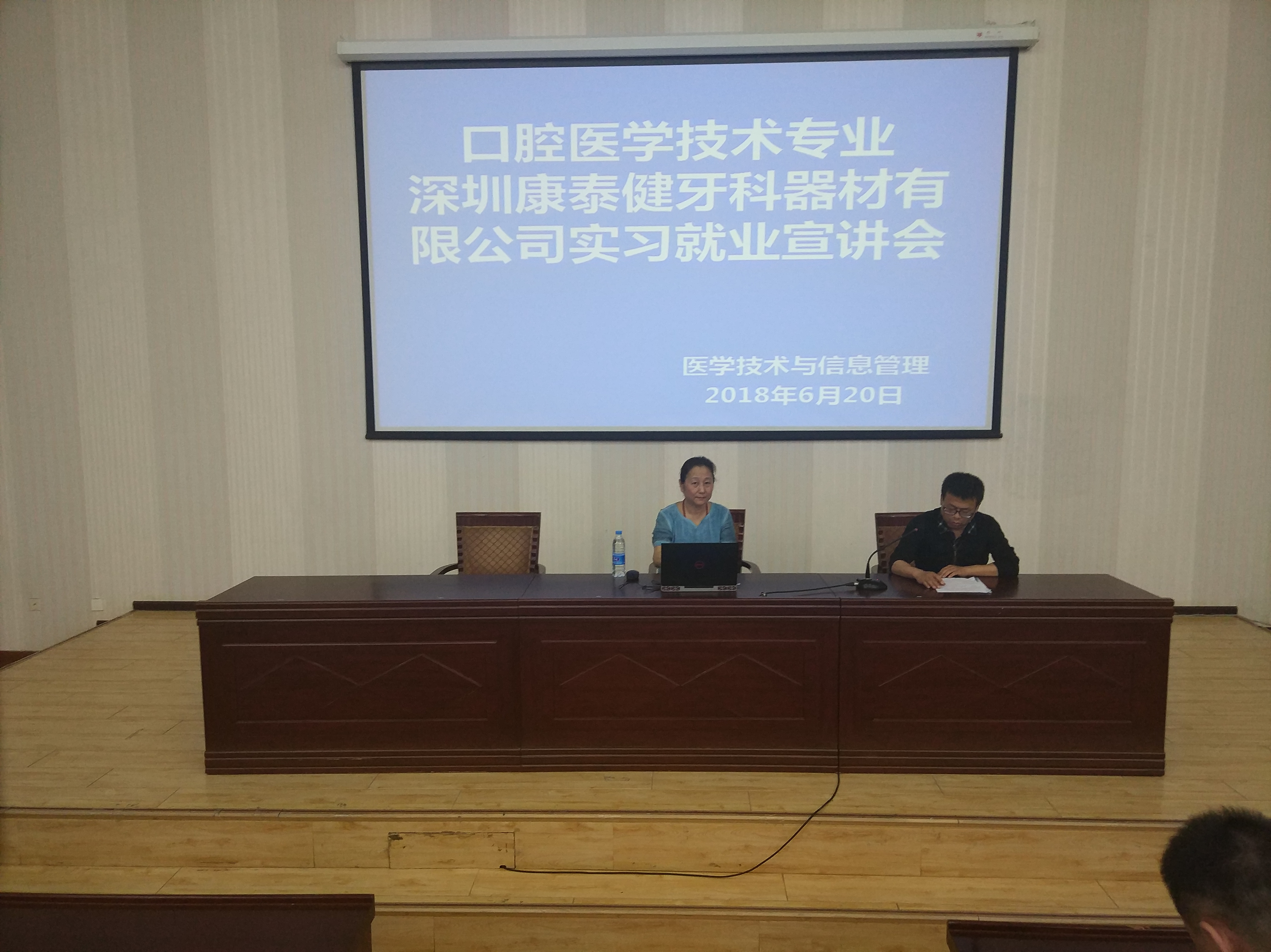 6月20日,醫(yī)學(xué)技術(shù)學(xué)院邀請深圳市康泰健牙科器材有限公司在正德廳召開企業(yè)實(shí)習(xí)就業(yè)宣講。參加宣講會的有康泰健牙科器材有限公司培訓(xùn)學(xué)校校長辛金紅、口腔技術(shù)專業(yè)教研室全體老師、在校口腔醫(yī)學(xué)技術(shù)專業(yè)學(xué)生,宣講會由系副主任蔡濟(jì)眾主持。