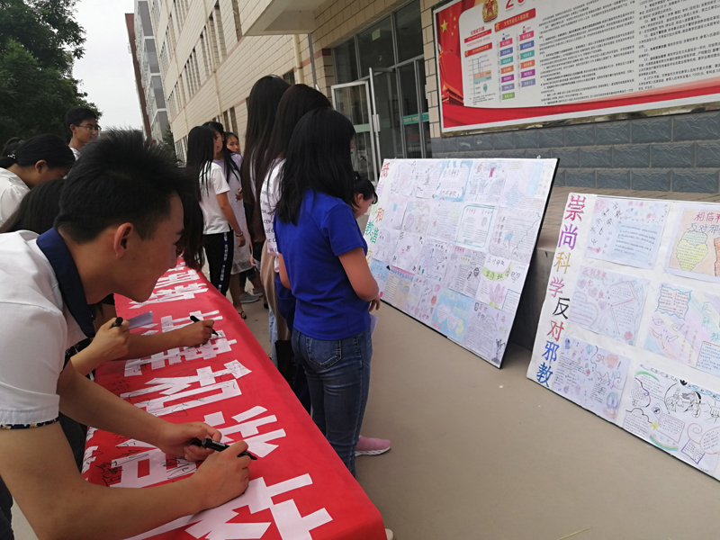 先后舉行“崇尚科學(xué),反對(duì)邪教,共建和諧校園”簽名活動(dòng)、開展“崇尚科學(xué),反對(duì)邪教”主題班會(huì)。班會(huì)課上,老師為學(xué)生講解什么是邪教組織以及邪教的危害,培養(yǎng)學(xué)生的理性思維,樹立正確的世界觀、人生觀、價(jià)值觀,用科學(xué)的精神自覺(jué)抵制邪教。并通過(guò)黑板報(bào),張貼反邪教手抄報(bào)等多種活動(dòng)形式,讓師生對(duì)邪教危害性有進(jìn)一步地了解,提高全社會(huì)反邪教、樹正氣的意識(shí)。以自己的實(shí)際行動(dòng),積極倡導(dǎo)、傳播科學(xué)思想,普及科學(xué)知識(shí),弘揚(yáng)科學(xué)精神,用科學(xué)的方法辦事,以科學(xué)的態(tài)度對(duì)待事物,共同促進(jìn)校園和諧發(fā)展,提高了師生認(rèn)識(shí)和抵制邪教的意識(shí)與能力。