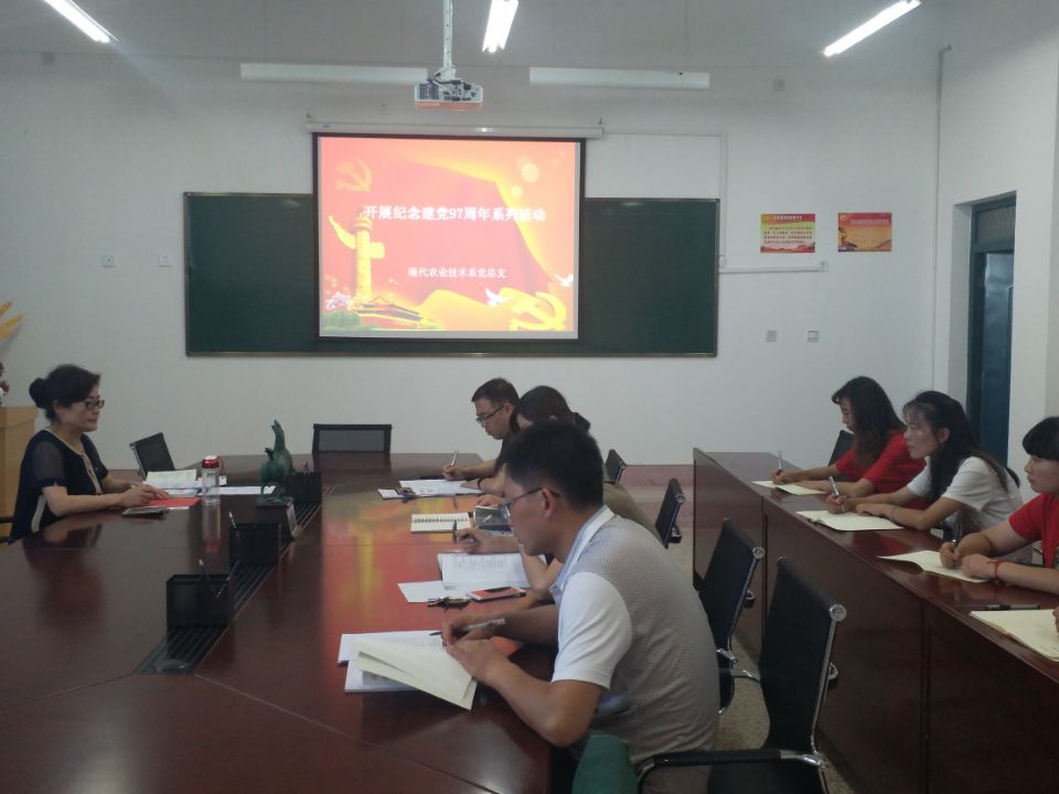建黨97周年之際,現(xiàn)代農(nóng)業(yè)技術(shù)系黨總支為深入貫徹落實(shí)習(xí)近平新時(shí)代中國(guó)特色社會(huì)主義思想和黨的十九大精神,推進(jìn)“兩學(xué)一做”學(xué)習(xí)教育常態(tài)化制度化,組織全體黨員教師開(kāi)展了主題黨日、集中學(xué)習(xí)研討、重溫入黨誓詞、專題黨課、黨員志愿服務(wù)等紀(jì)念建黨97周年系列活動(dòng)。