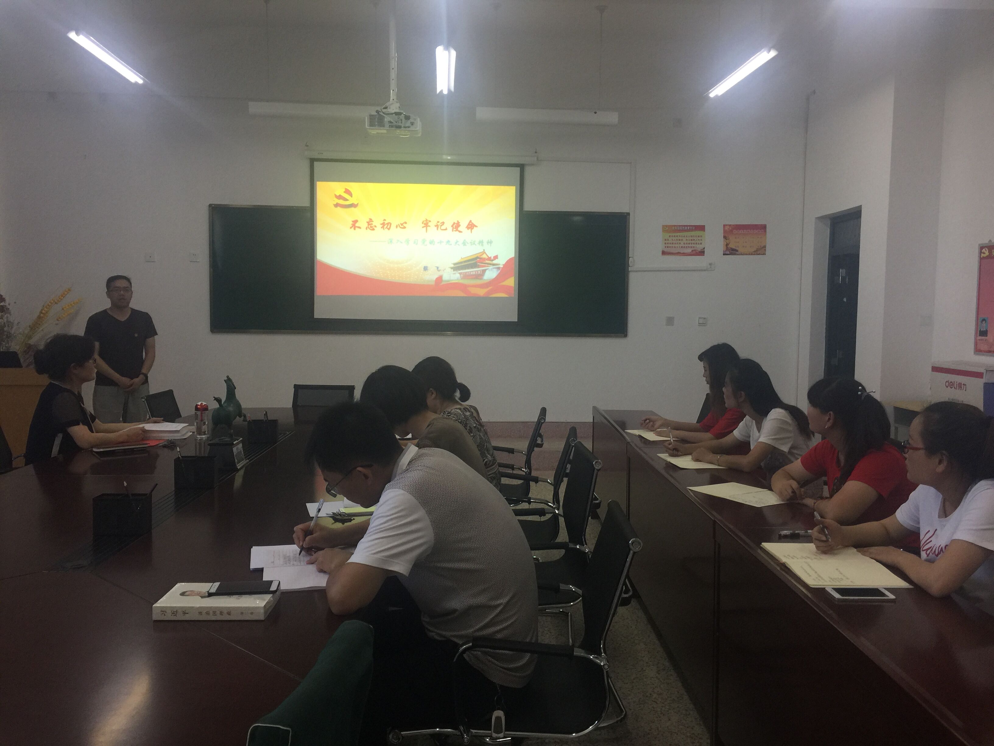 食品專業(yè)黨支部書(shū)記蔡飛同志講了題為 “不忘初心 牢記使命——深入學(xué)習(xí)黨的十九大會(huì)議精神”的黨課。他主要通過(guò)十九大會(huì)議的基本情況、重要意義和主題;十九大報(bào)告的主要內(nèi)容;十九大報(bào)告的重要論斷和亮點(diǎn),帶領(lǐng)全系黨員再一次深入學(xué)習(xí)了十九大精神。