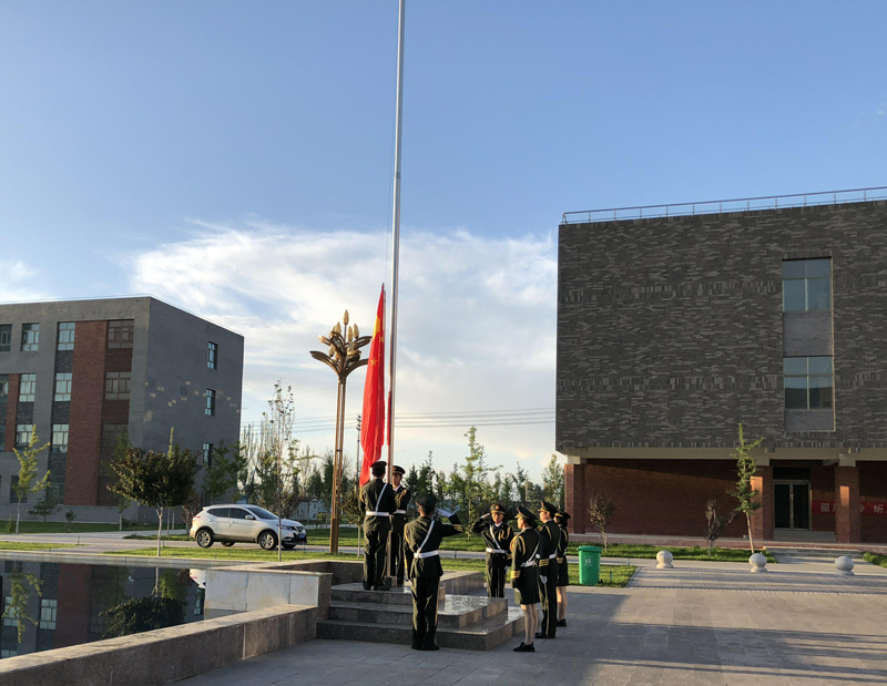 師生們精神飽滿,抬頭挺胸,伴著《義勇軍進(jìn)行曲》的響起,唱國歌、行注目禮,莊嚴(yán)肅穆。