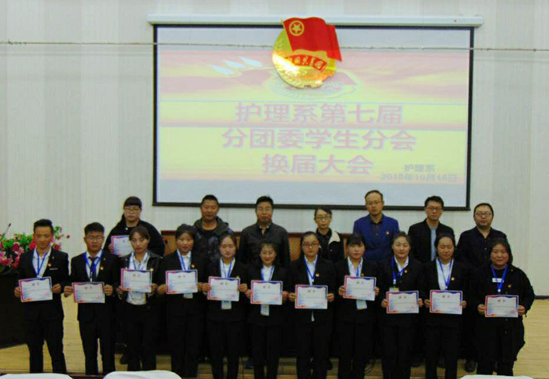 伴隨《共青團團歌》的歌聲,本次大會拉開了序幕。韓曉萍主任宣讀護理系分團委學(xué)生分會新一屆學(xué)生干部的任命決定后,系領(lǐng)導(dǎo)和老師為新生當(dāng)選的團學(xué)干部頒發(fā)聘書和工作證。