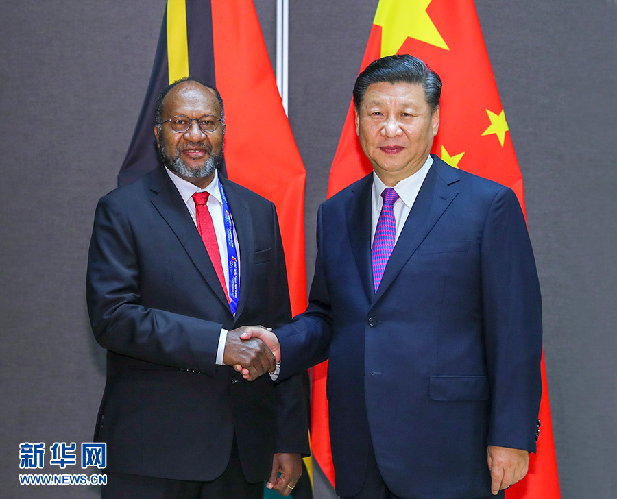 11月16日,國(guó)家主席習(xí)近平在莫爾茲比港分別會(huì)見建交太平洋島國(guó)領(lǐng)導(dǎo)人。這是習(xí)近平會(huì)見紐??偫硭?新華社記者 丁林 攝