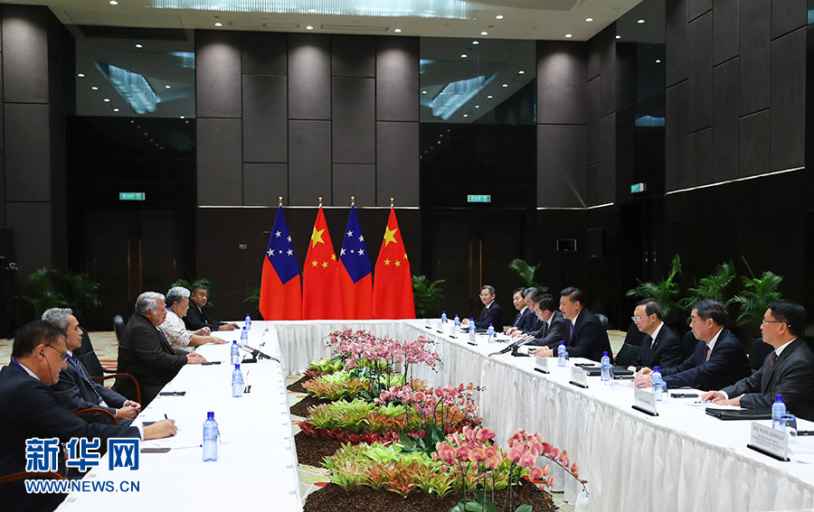在會(huì)見薩摩亞總理圖伊拉埃帕?xí)r,習(xí)近平指出,當(dāng)前中薩關(guān)系面臨新的發(fā)展機(jī)遇。雙方要秉持高度政治互信,繼續(xù)在涉及彼此核心利益和重大關(guān)切問題上相互支持,在“一帶一路”框架內(nèi)拓展各領(lǐng)域合作,擴(kuò)大人文交流。中方支持薩摩亞舉辦2019年太平洋運(yùn)動(dòng)會(huì),將繼續(xù)支持薩方提高應(yīng)對(duì)氣候變化能力。