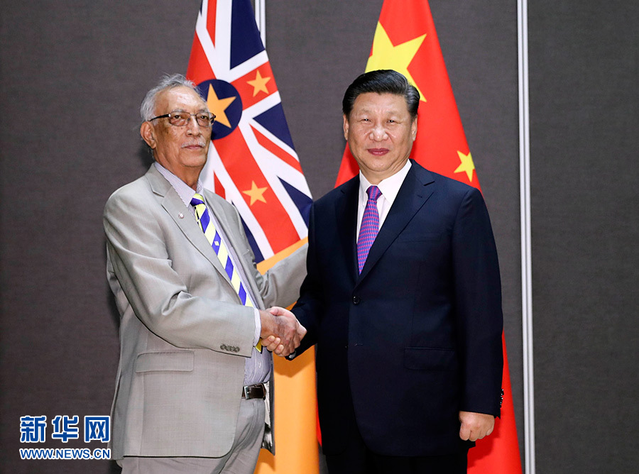 11月16日,國(guó)家主席習(xí)近平在莫爾茲比港分別會(huì)見建交太平洋島國(guó)領(lǐng)導(dǎo)人。這是習(xí)近平會(huì)見庫(kù)克群島總理普納。 新華社記者 丁林 攝