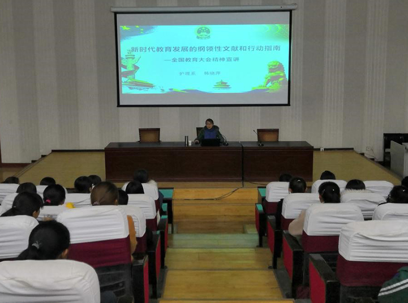 為深入做好全國教育大會精神宣講工作,根據(jù)學(xué)院安排12月24日護(hù)理系主任韓曉萍在正德廳為護(hù)理系200余人進(jìn)行全國教育大會精神宣講。
