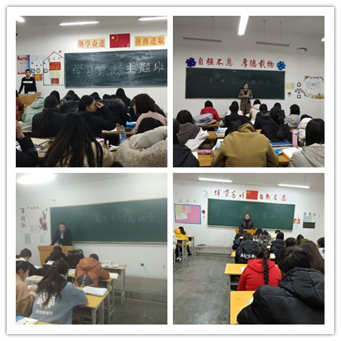 為深入學習貫徹習近平新時代中國特色社會主義思想和黨的十九大精神,牢固樹立“四個意識”,進一步維護憲法法律權威,強力推進法治校園建設,扎實做好校園憲法學習宣傳普及工作,營造尊法、學法、守法、用法的濃厚氛圍,在第五個國家憲法日來臨之際,藥學系召開會議安排部署了學習憲法各項活動,各班級也分別召開了“學習憲法”主題班會。