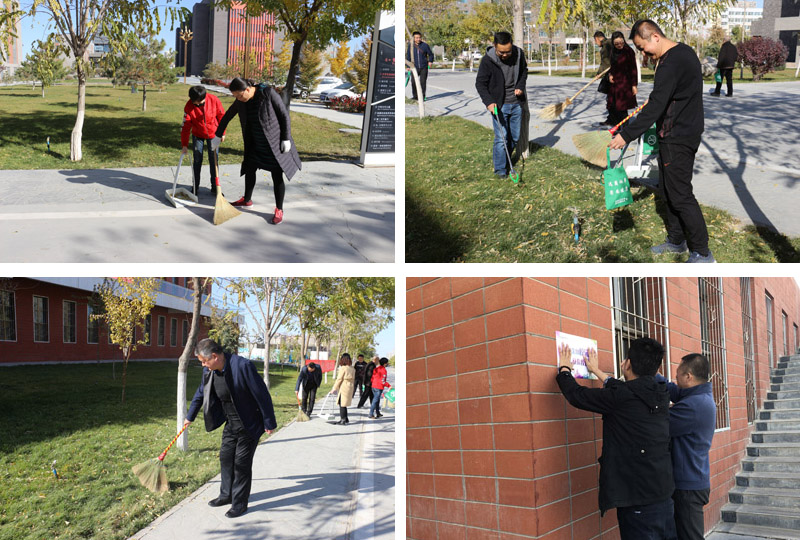 支部全體黨員在大學(xué)生活動中心門口、風(fēng)雨操場及校園馬路清掃落葉和垃圾,并對沿線衛(wèi)生死角進行清理,對不文明行為進行即時勸導(dǎo)。在教學(xué)樓、活動中心、公寓樓、食堂等建筑物的醒目位置張貼20余張“創(chuàng)建文明校園”、“禁止吸煙”等標(biāo)志。通過開展“創(chuàng)建文明校園”活動,進一步提升我院“創(chuàng)建文明城市”迎檢和“創(chuàng)建文明校園”活動效果。