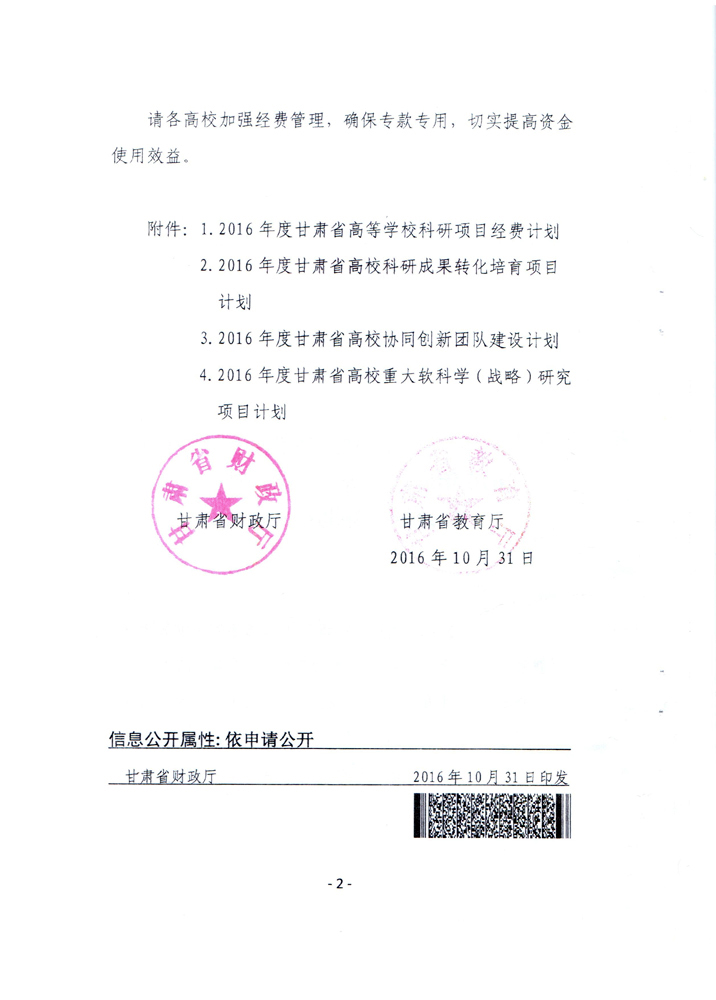 轉發(fā)甘肅省財政廳 教育廳文件 關于下達2016年度高校導師科研經費和“2011計劃”補助經費的通知