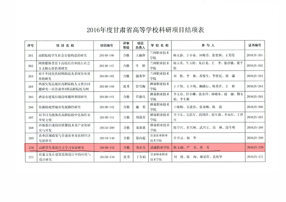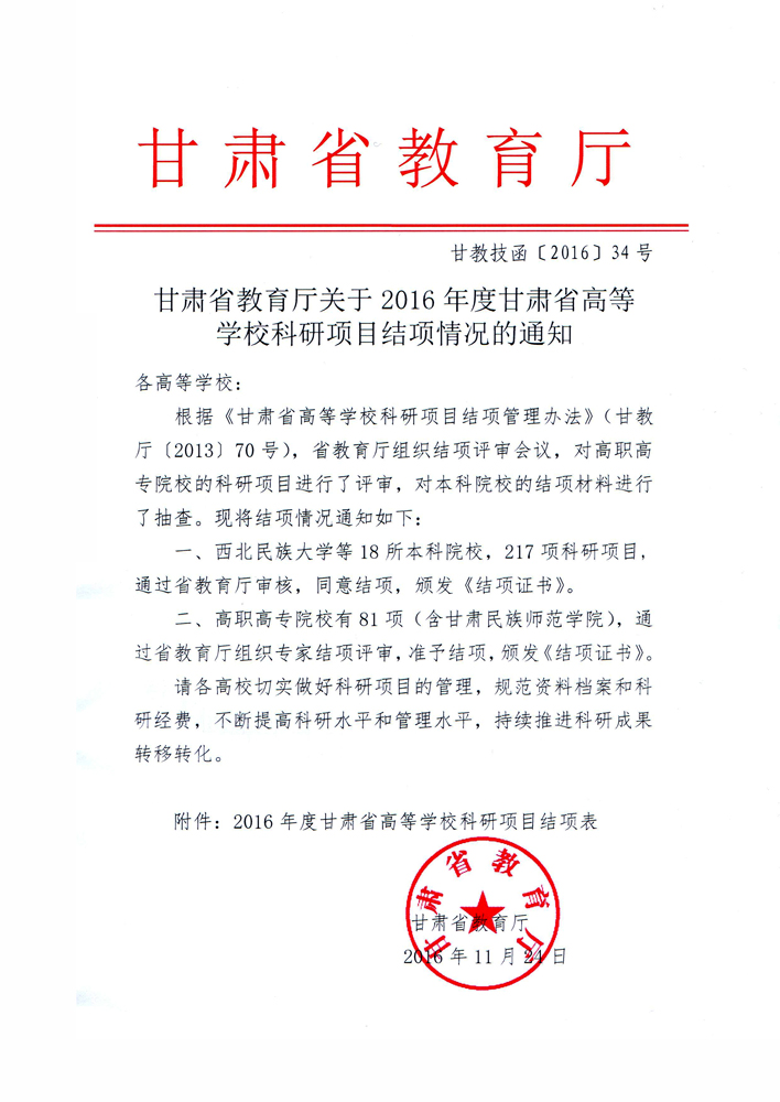 轉(zhuǎn)發(fā)甘肅省教育廳關(guān)于2016年度甘肅省高等學(xué)校科研項目結(jié)項情況的通知