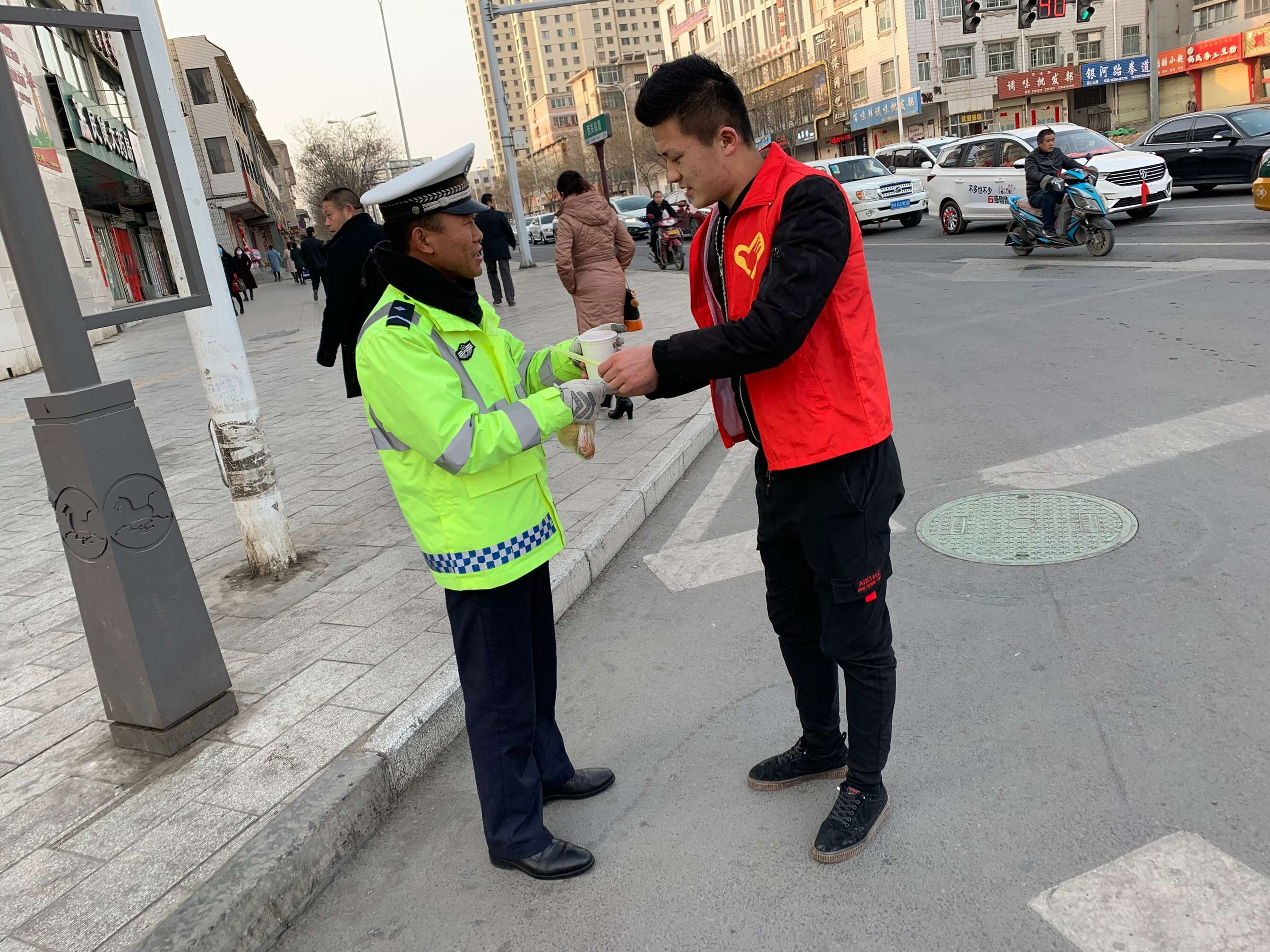 升旗儀式結(jié)束后,汽車系組織了“學雷鋒精神,送溫暖早餐”主題學生志愿者活動,為辛苦工作的環(huán)衛(wèi)工人及交警送上溫暖的早餐。詮釋了當代大學生繼承和發(fā)揚“雷鋒精神”重在行動,人人參與的積極景象。