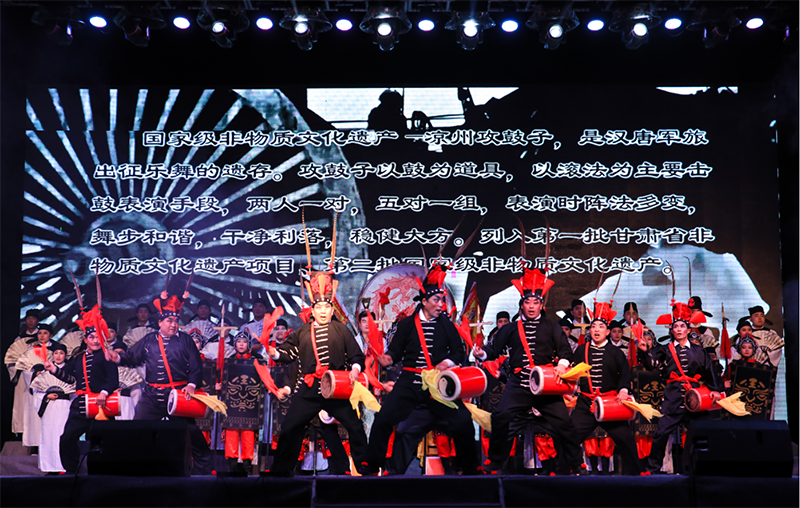 近年來(lái),學(xué)院師生創(chuàng)作、改編了許多反映地方特色和校園生活主題的節(jié)目。其中晚會(huì)上由我院教師自編原創(chuàng)的大型吟誦舞臺(tái)劇《金戈鐵馬入夢(mèng)涼州》邀請(qǐng)了國(guó)家級(jí)非物質(zhì)文化遺產(chǎn)涼州攻鼓子助力表演,結(jié)合戲曲、舞蹈、器樂(lè)等形式,全方位展示了涼州文化深厚的底蘊(yùn)和鮮明的地域特色,涼州攻鼓子表演更是蕩氣回腸,讓現(xiàn)場(chǎng)師生充分領(lǐng)略了傳統(tǒng)文化的博大精深和獨(dú)特魅力。大學(xué)生藝術(shù)團(tuán)主持隊(duì)自編自演的詩(shī)歌朗誦《青春報(bào)告》,結(jié)合當(dāng)代大學(xué)生青春夢(mèng)想、歷史使命的創(chuàng)作和聲情并茂的演繹,體現(xiàn)了新青年對(duì)于理想與擔(dān)當(dāng)?shù)娜陆庾x。大學(xué)生藝術(shù)團(tuán)曲藝隊(duì)自導(dǎo)改編的相聲《新生入學(xué)指南》,以詼諧幽默的形式講解了大一新生入學(xué)后的趣味生活,贏得了新同學(xué)們的共鳴和陣陣掌聲。