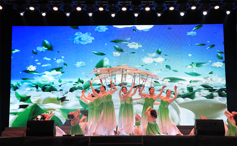 晚會(huì)中,在音樂(lè)學(xué)科專(zhuān)業(yè)頗有建樹(shù)的幾位老師表演了高水準(zhǔn)的器樂(lè)合奏《贊歌》,讓師生陶醉于器樂(lè)演奏的優(yōu)美旋律和意境,贏得了全場(chǎng)經(jīng)久不息的掌聲。大學(xué)生藝術(shù)團(tuán)舞蹈隊(duì)和聲樂(lè)隊(duì)表演的歌伴舞《紅旗飄飄》《美麗中國(guó)》激情四射、唯美動(dòng)聽(tīng),詮釋了青年學(xué)子對(duì)祖國(guó)的熱愛(ài)和深情祝福。人文藝術(shù)教育系選送的現(xiàn)代舞《追逐夢(mèng)想》用歡快的舞步展現(xiàn)了青年最富有朝氣、最富有夢(mèng)想的精神風(fēng)貌,《茉莉花開(kāi)》更是讓師生陶醉于傳統(tǒng)舞蹈的優(yōu)美意境。雙人舞表演《鄉(xiāng)·遠(yuǎn)方》舞蹈動(dòng)作豪放、粗狂但不失委婉、細(xì)致,為我們呈現(xiàn)出“天之驕子”的氣概。校園好聲音教師組冠軍和學(xué)生組冠軍合唱的歌曲《你是我的眼》傳唱了職院好聲音,定格了大家的青春記憶。校園二把手樂(lè)隊(duì)帶來(lái)的歌曲《平凡之路》引起全場(chǎng)轟動(dòng),將晚會(huì)推向了高潮,同學(xué)們紛紛點(diǎn)亮了自己的手機(jī),現(xiàn)場(chǎng)匯成了一片充滿(mǎn)歌聲的“星海”。