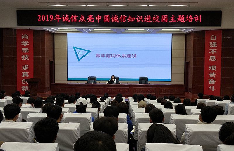 為進(jìn)一步拓寬誠(chéng)信知識(shí)宣傳的深度和廣度,提升我院青年學(xué)生的誠(chéng)信意識(shí),增強(qiáng)同學(xué)們信用理念和防范重大風(fēng)險(xiǎn)的意識(shí), 3月30日上午,2019年“誠(chéng)信點(diǎn)亮中國(guó)”誠(chéng)信知識(shí)進(jìn)校園活動(dòng)在菁英廳舉辦,團(tuán)省委青年信用體系建設(shè)領(lǐng)導(dǎo)小組辦公室主任高振葉作了《青年信用體系建設(shè)與志愿中國(guó)》主題講座,團(tuán)市委少工委副主任許娜出席活動(dòng),院團(tuán)委教師和220學(xué)生代表參加了培訓(xùn)。