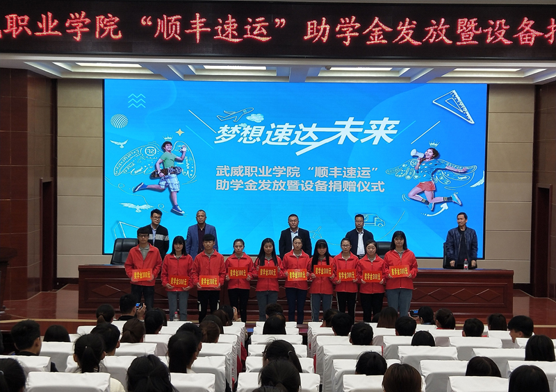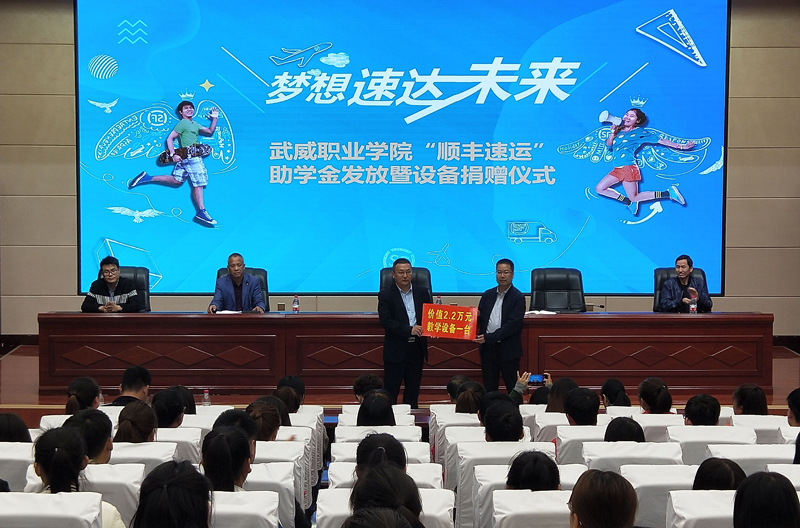 5月8日下午,“順豐速運”集團獎助學(xué)金發(fā)放暨設(shè)備捐贈儀式在學(xué)院菁英廳舉行。順豐校企合作總經(jīng)理高國軍、順豐航空樞紐人力資源部經(jīng)理張梁、順豐杭州業(yè)務(wù)區(qū)人力資源部經(jīng)理胡云生,武威職業(yè)學(xué)院經(jīng)濟管理系書記潘從民、主任張伯成、商務(wù)營銷教研室主任葉金山、物流專業(yè)教師代表和物流管理專業(yè)17級全體同學(xué)及相關(guān)專業(yè)學(xué)生代表近200人參加了本次儀式。儀式由經(jīng)濟管理系書記潘從民主持。