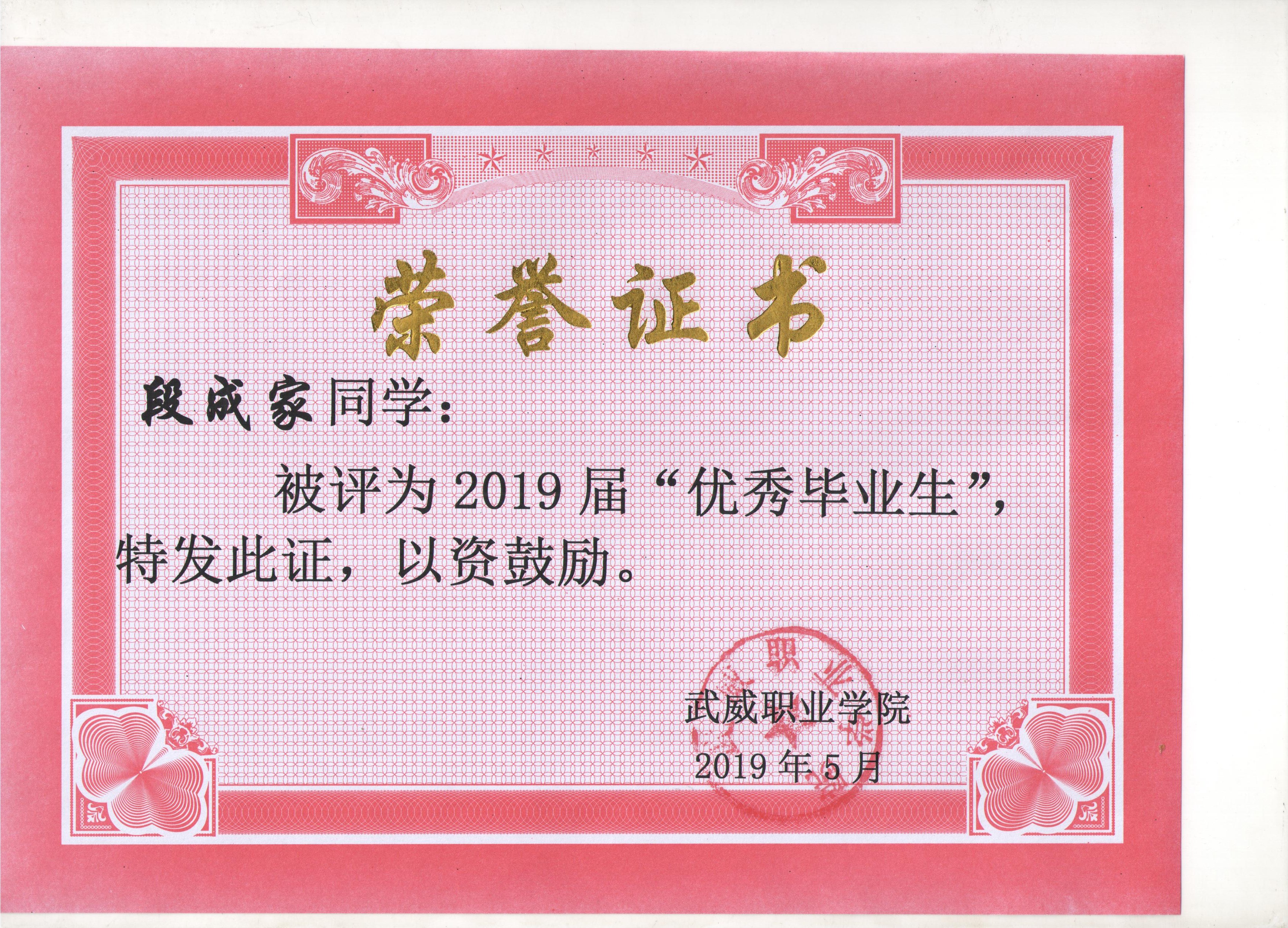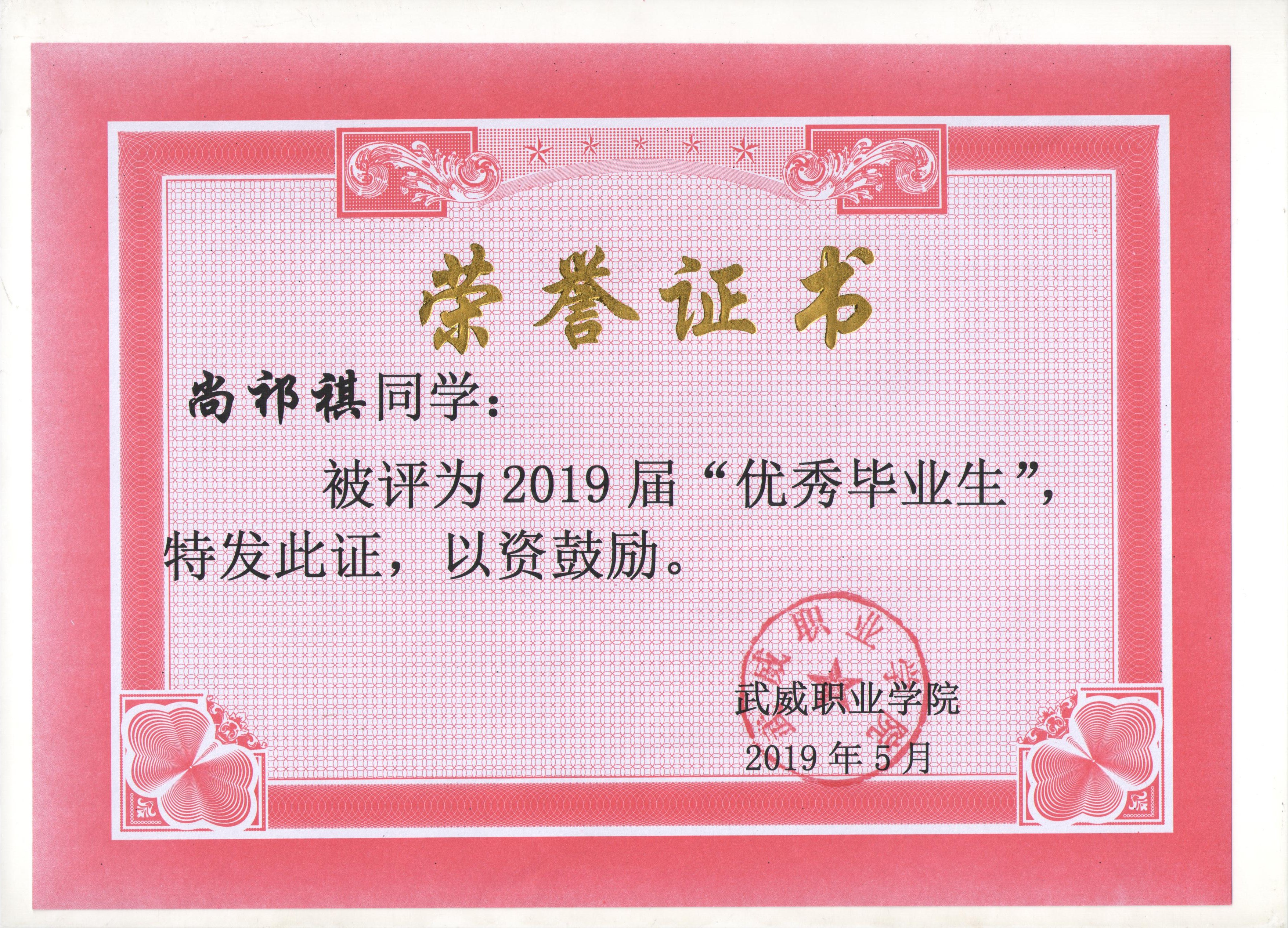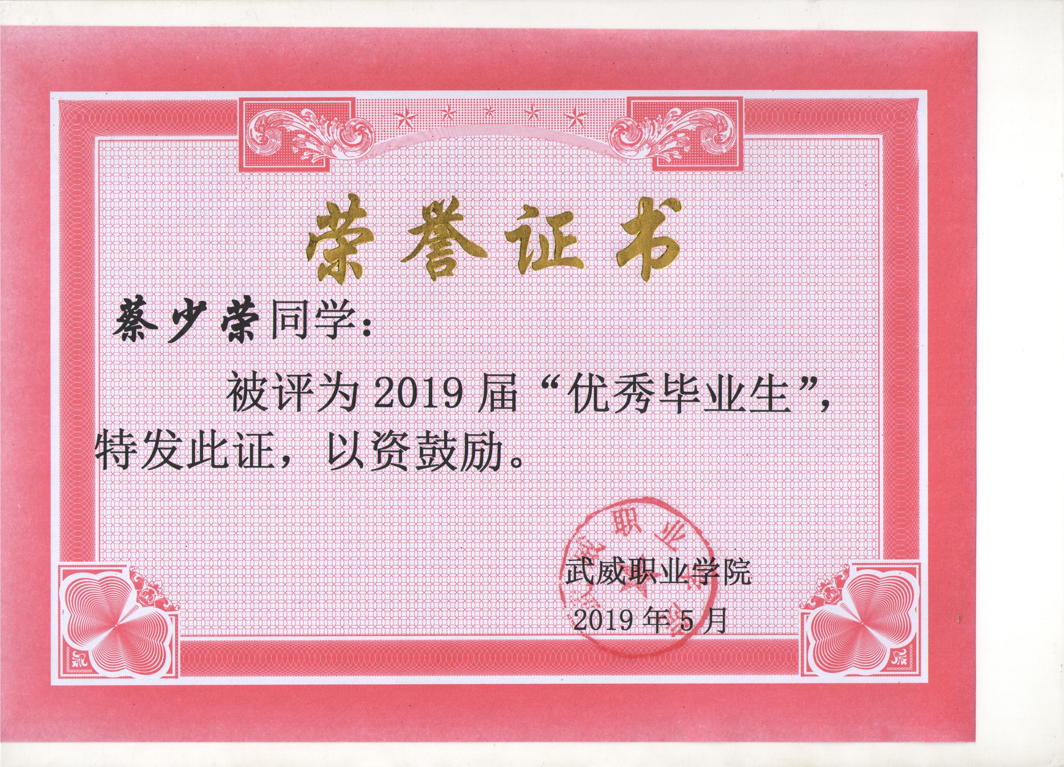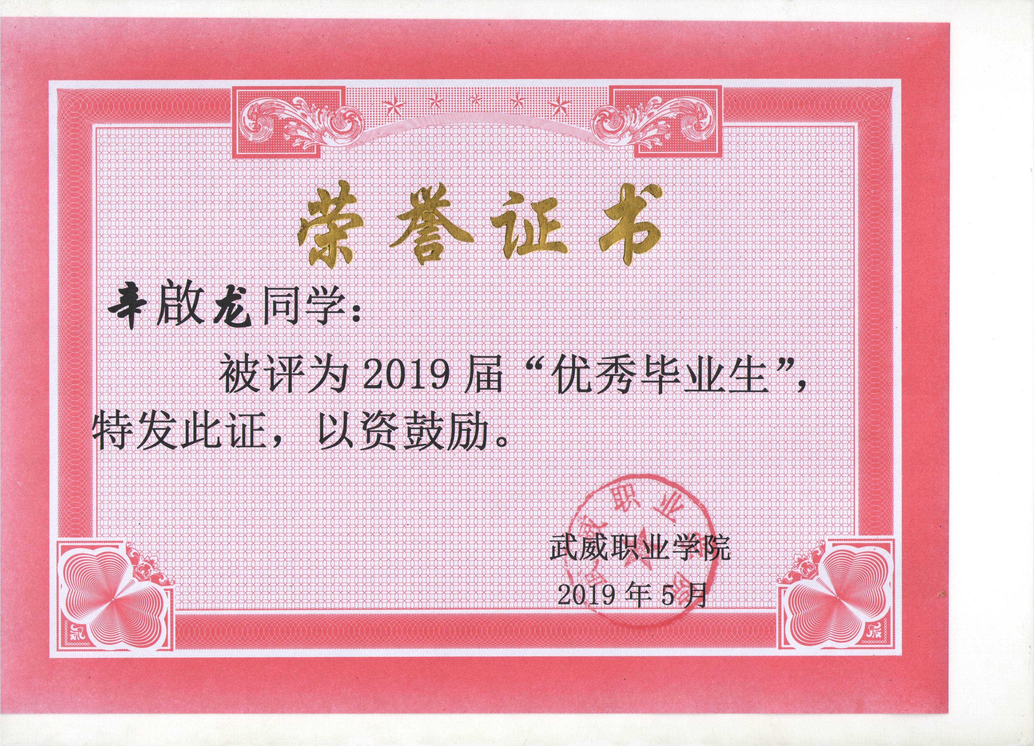 我系蔡少榮等19名同學(xué)榮獲武威職業(yè)學(xué)院2019屆“優(yōu)秀畢業(yè)生”榮譽(yù)稱號(hào)
