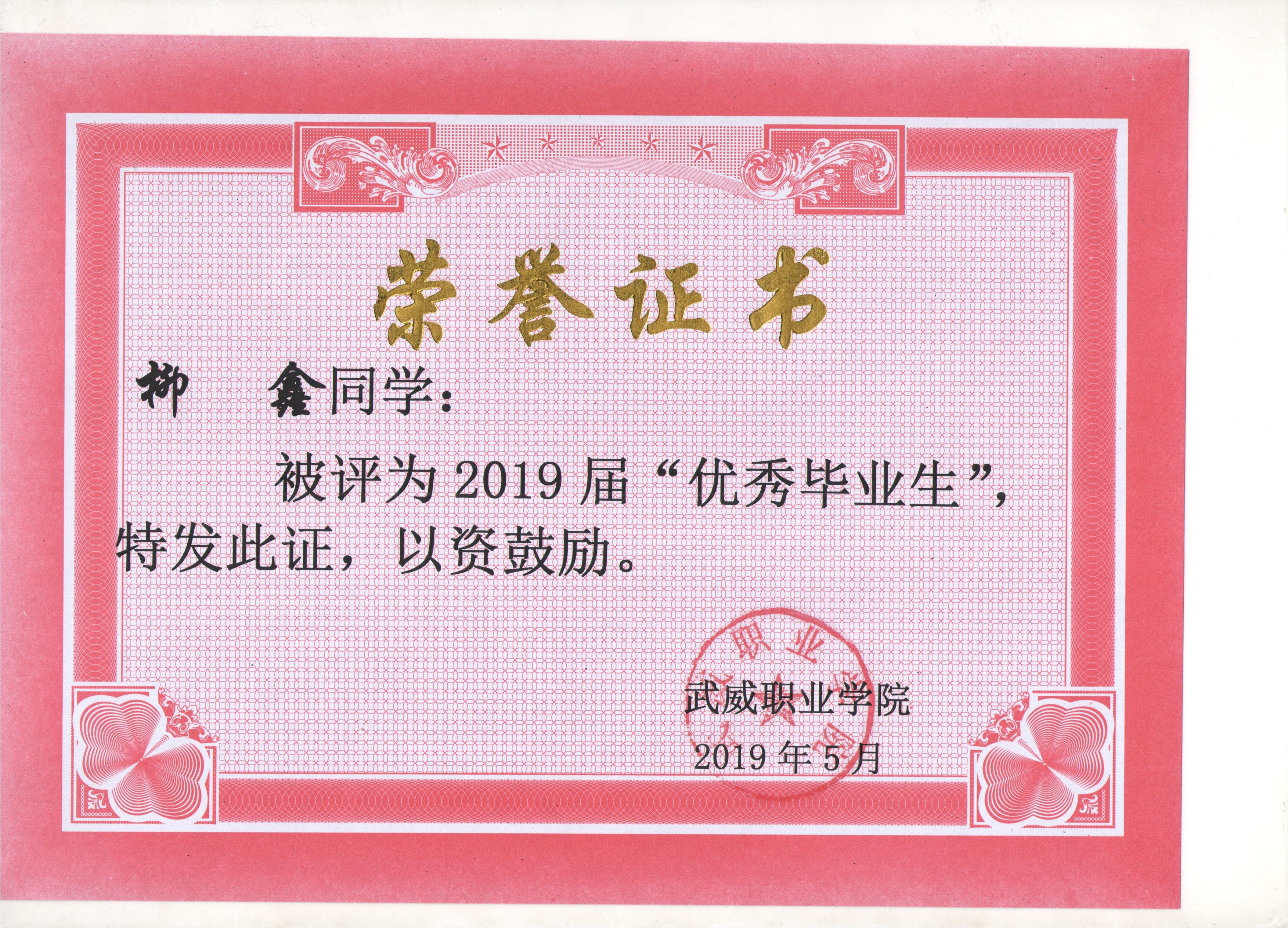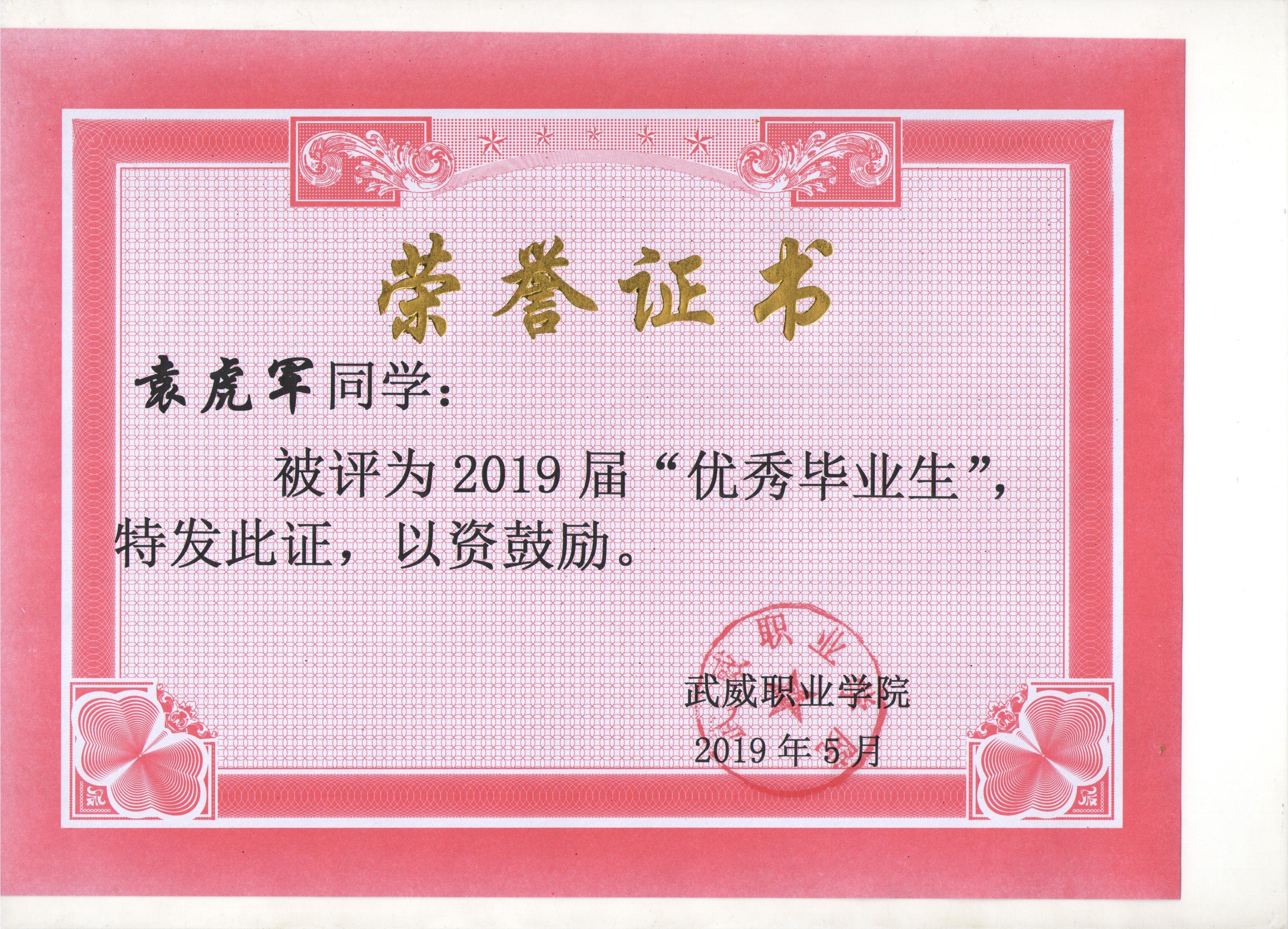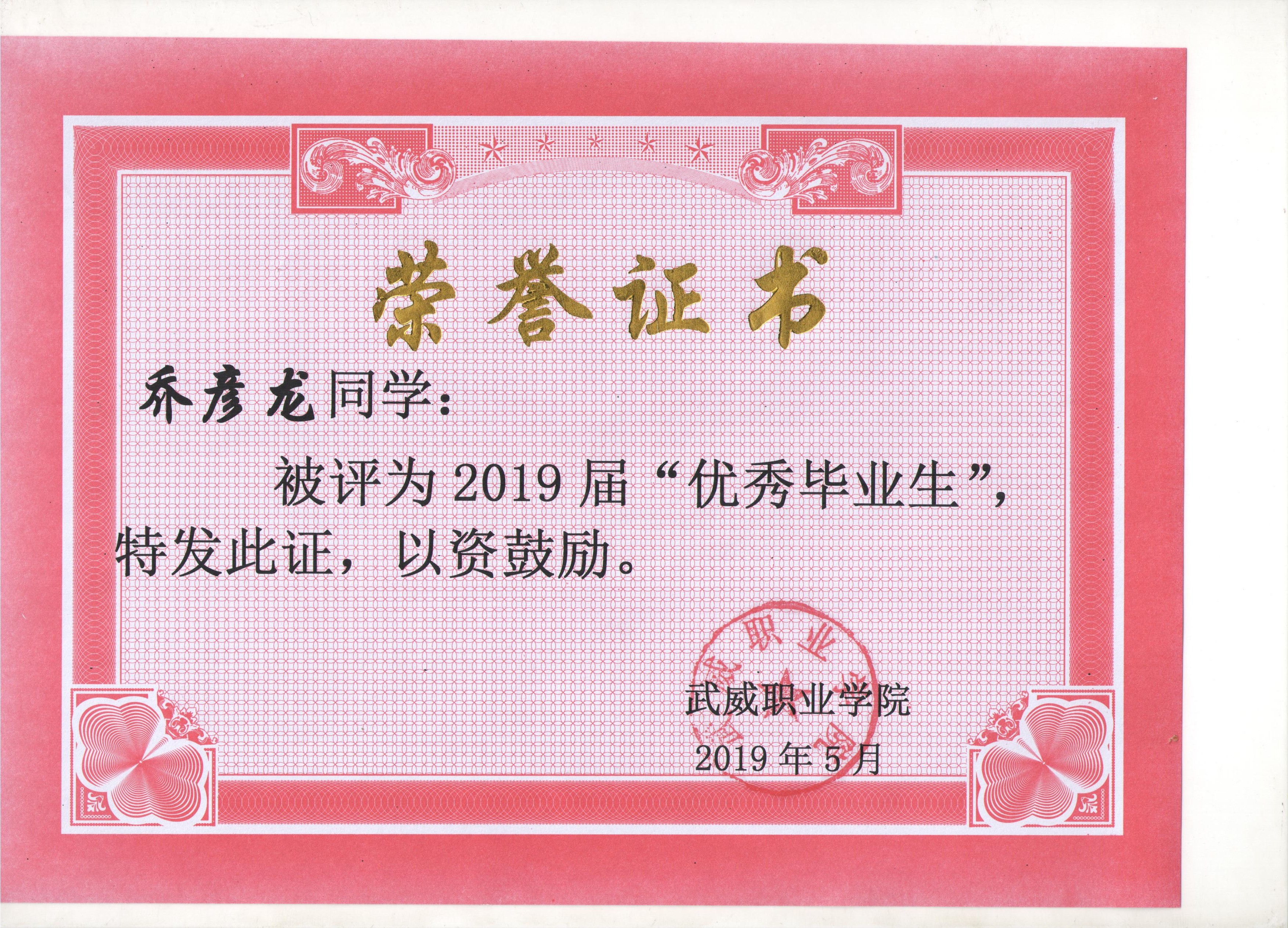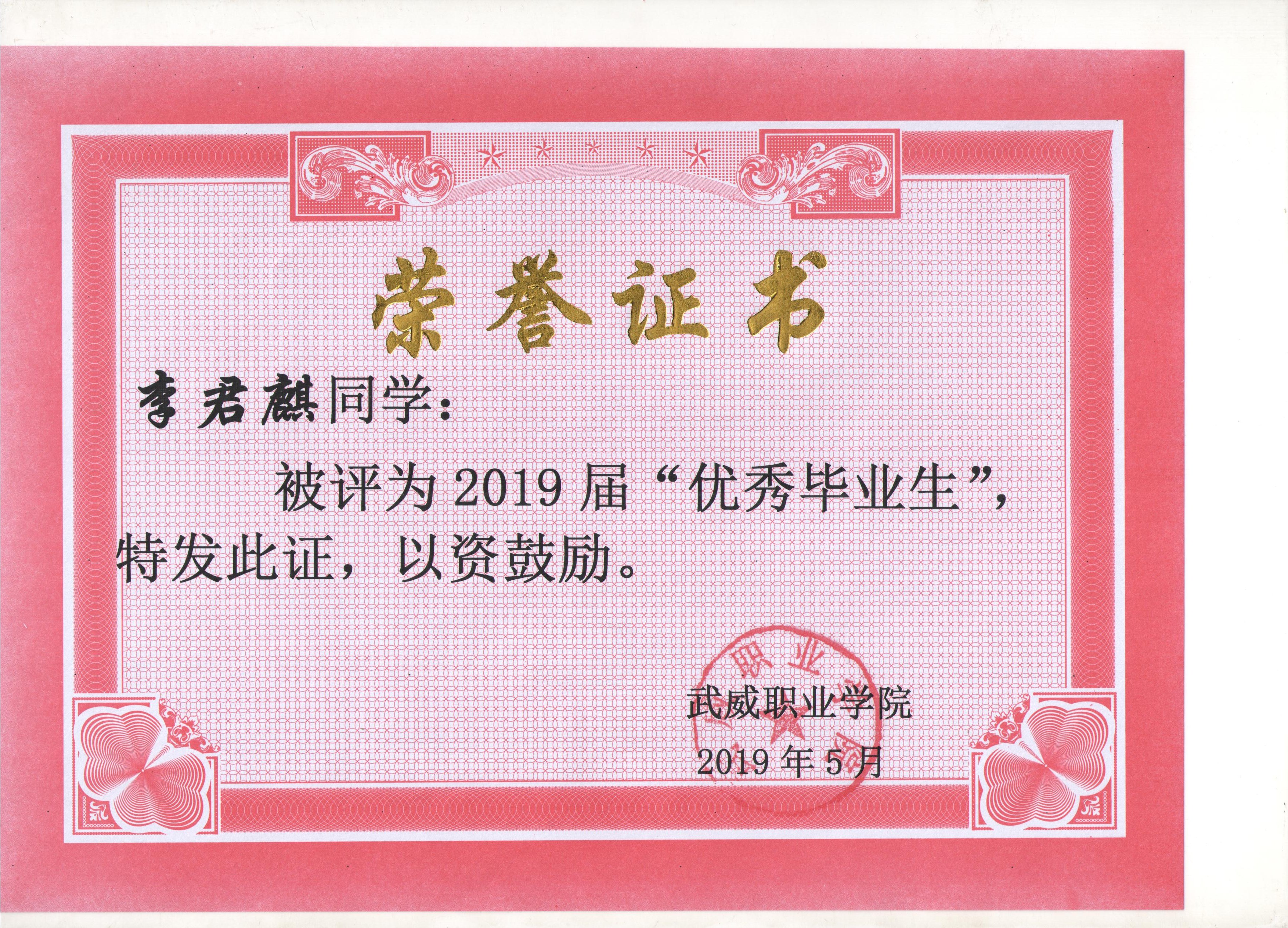 我系蔡少榮等19名同學(xué)榮獲武威職業(yè)學(xué)院2019屆“優(yōu)秀畢業(yè)生”榮譽(yù)稱號(hào)