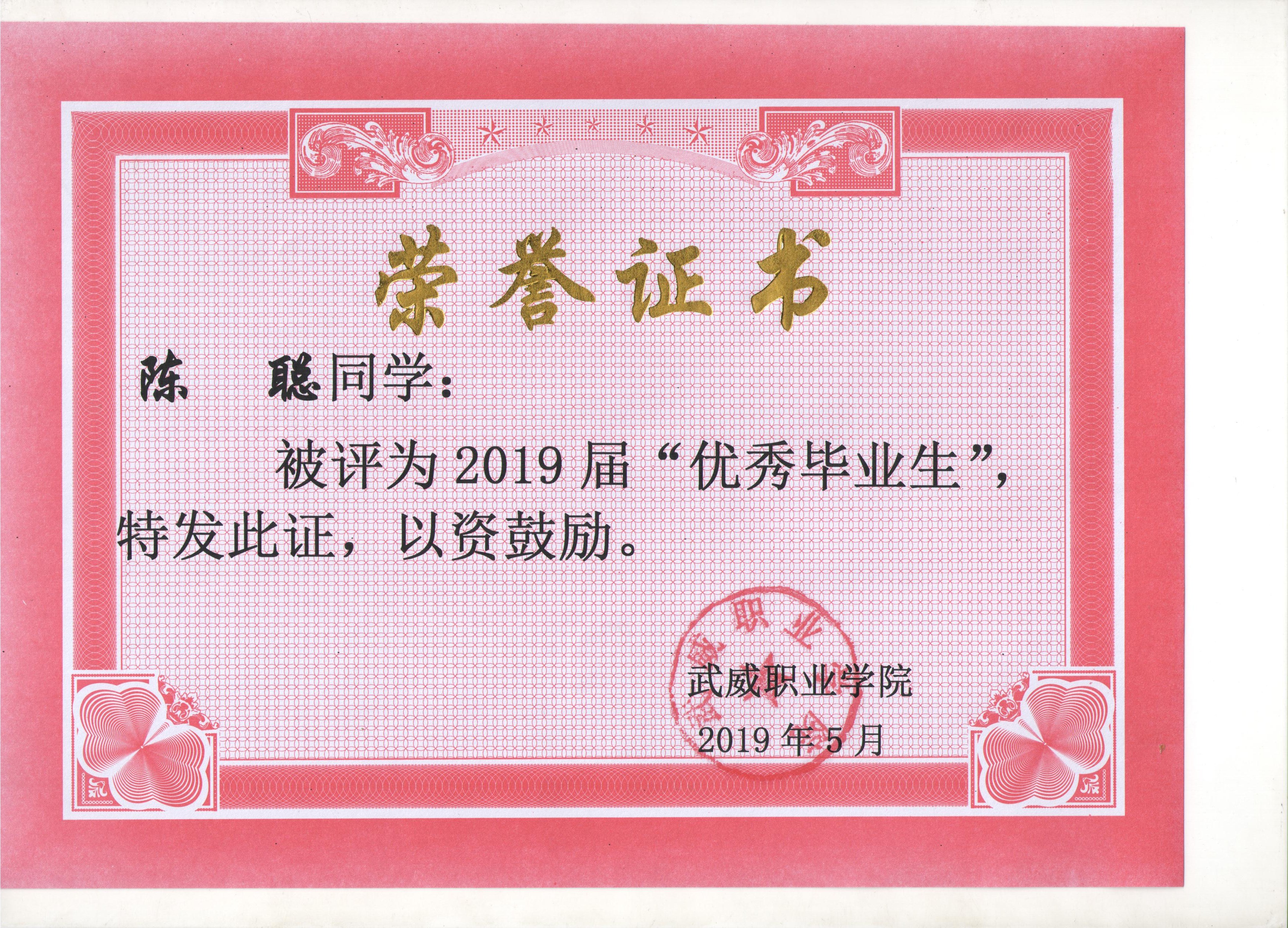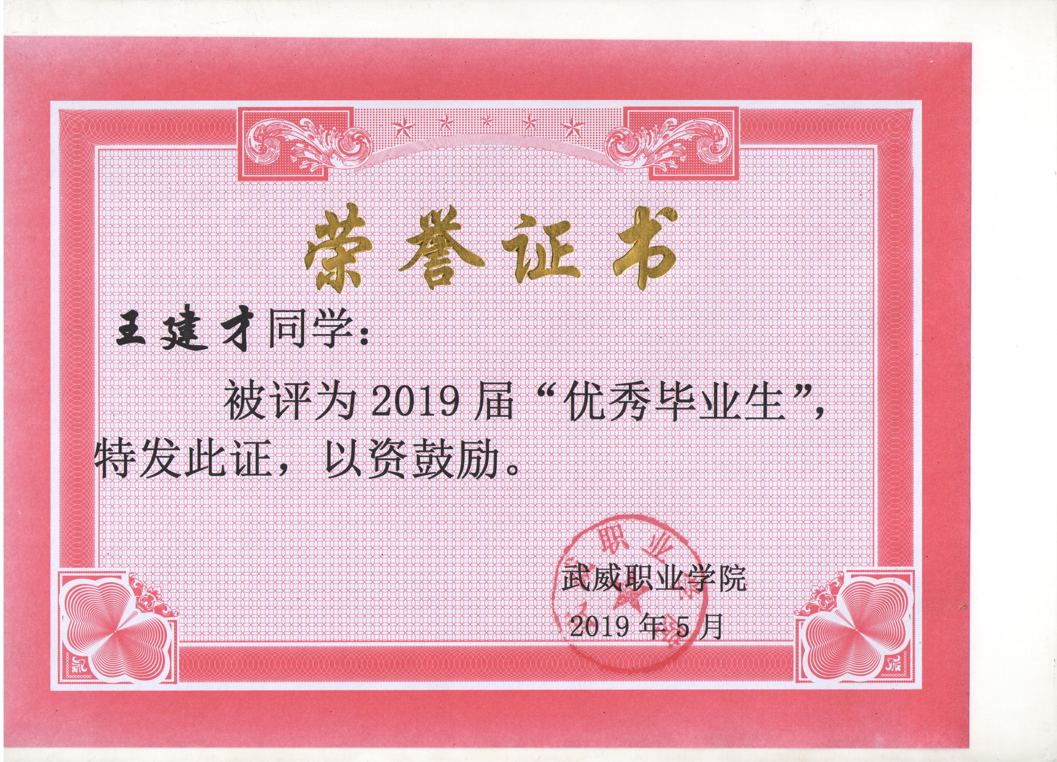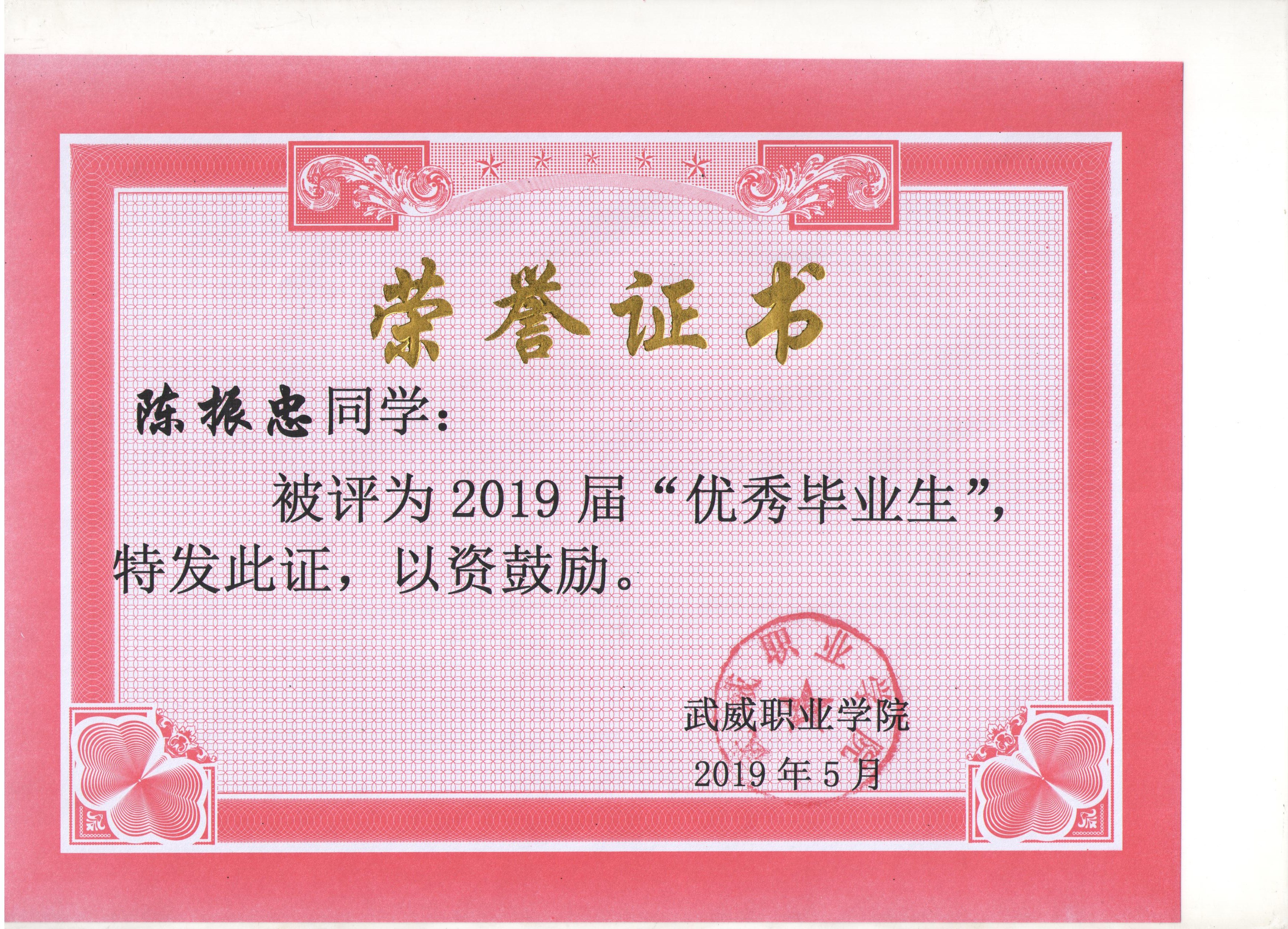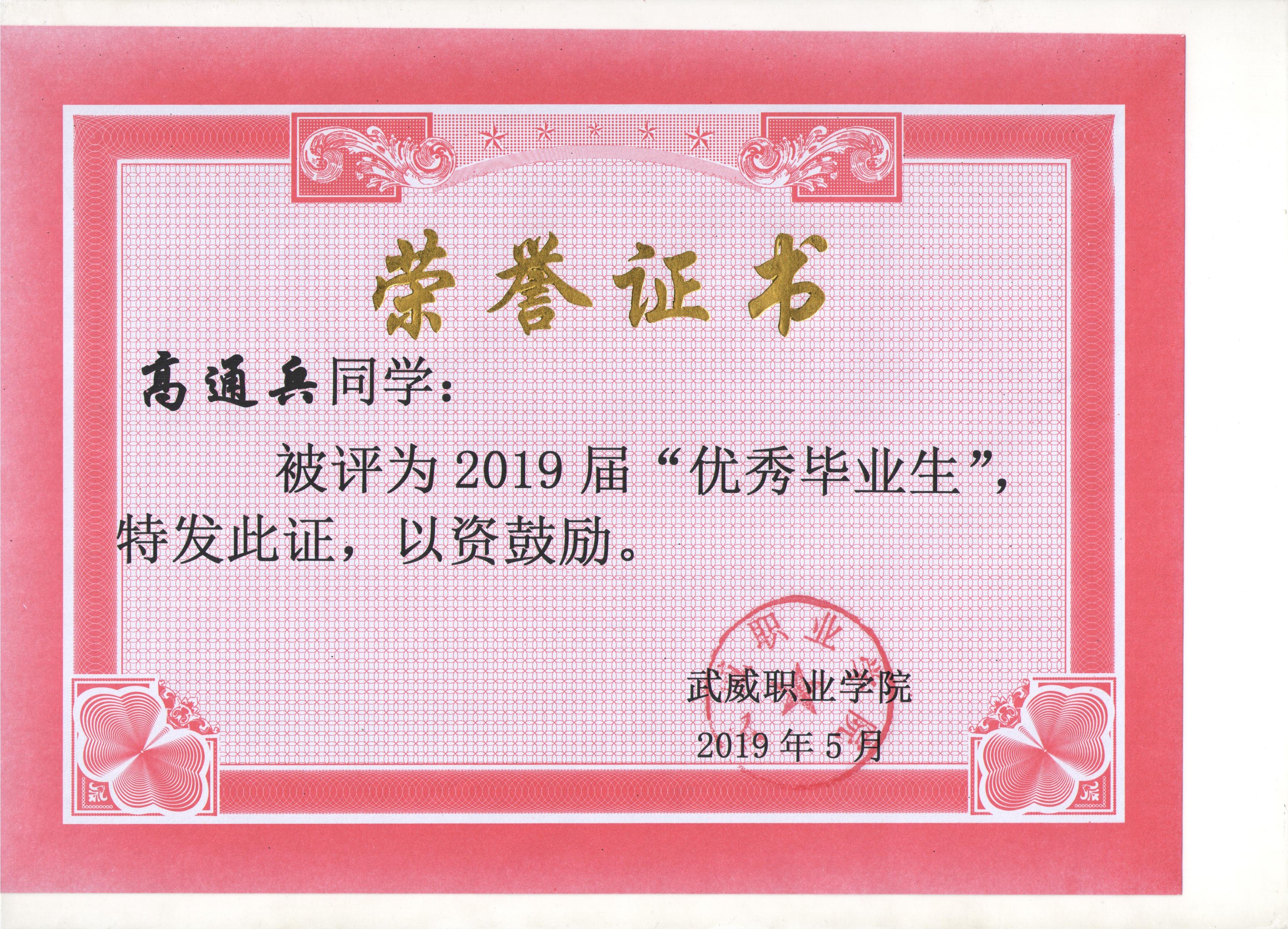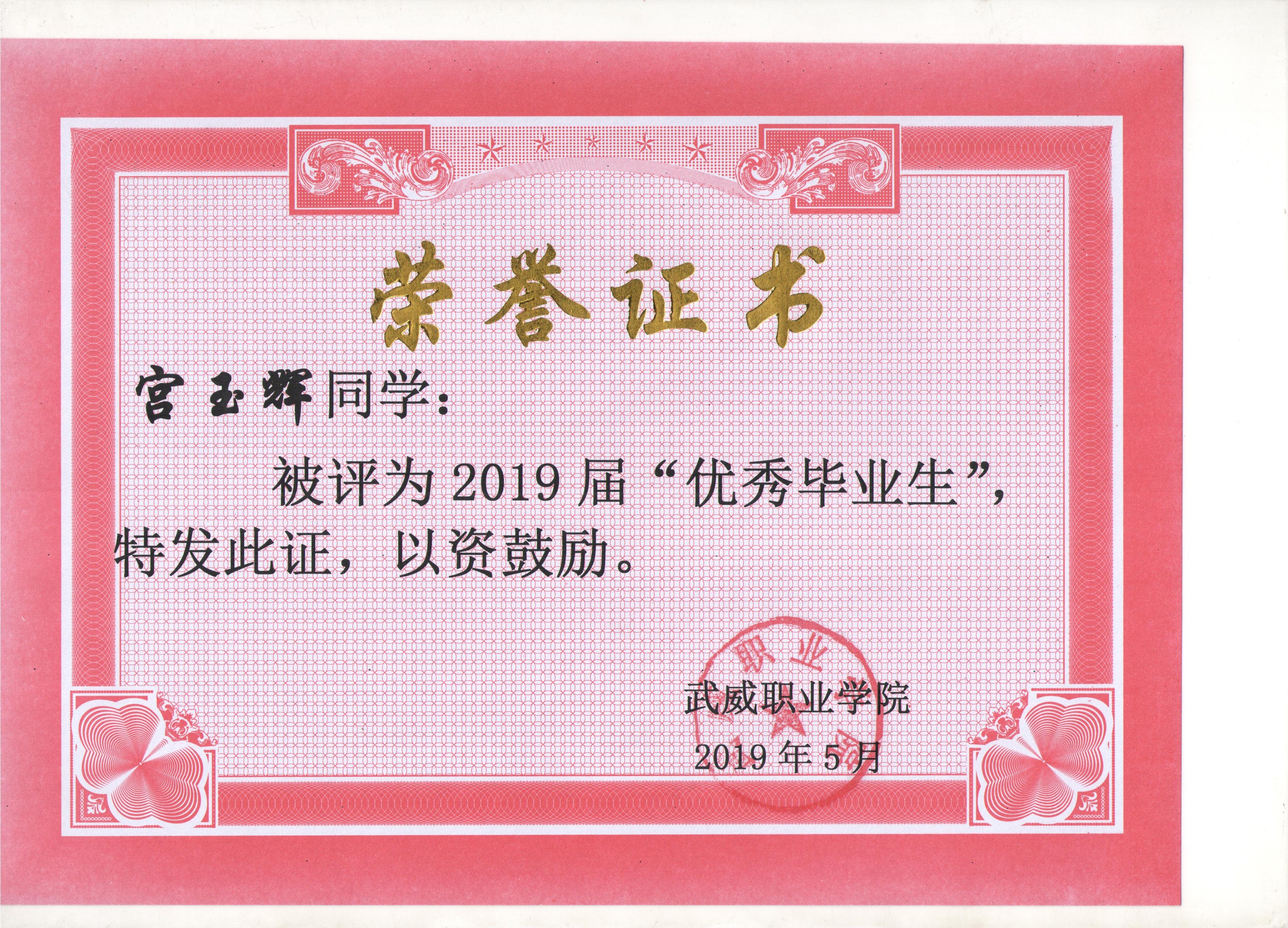 我系蔡少榮等19名同學(xué)榮獲武威職業(yè)學(xué)院2019屆“優(yōu)秀畢業(yè)生”榮譽(yù)稱號(hào)