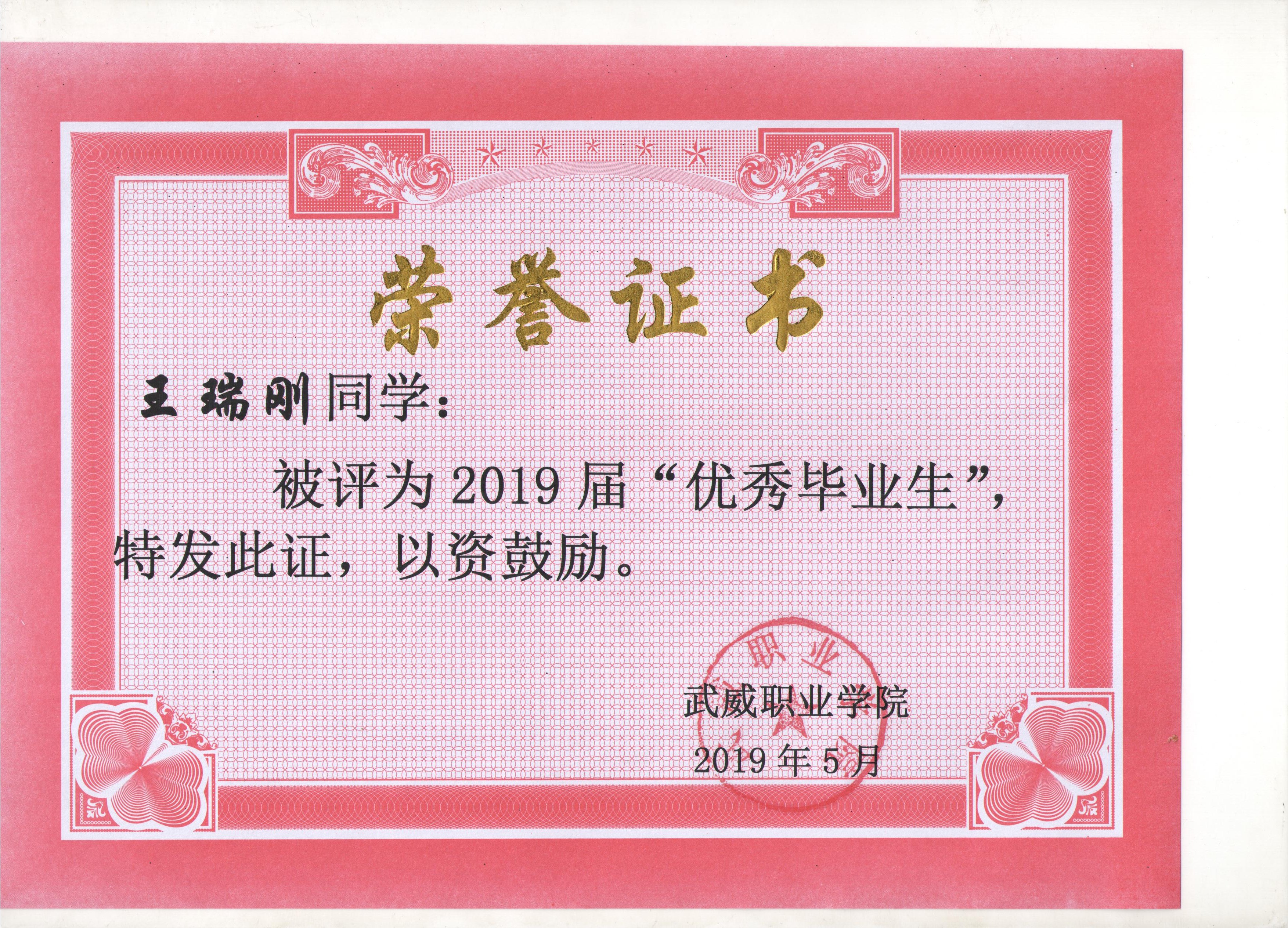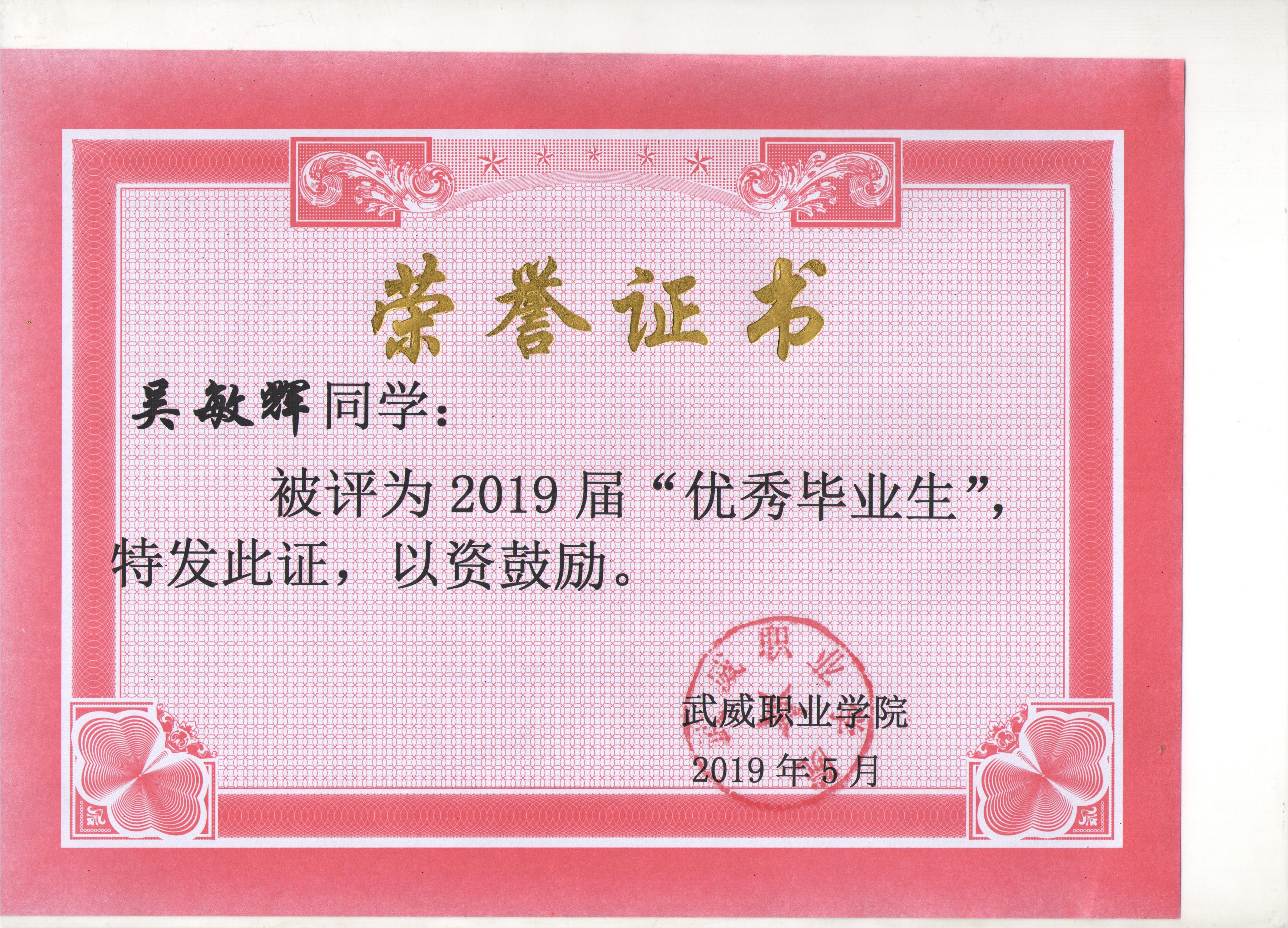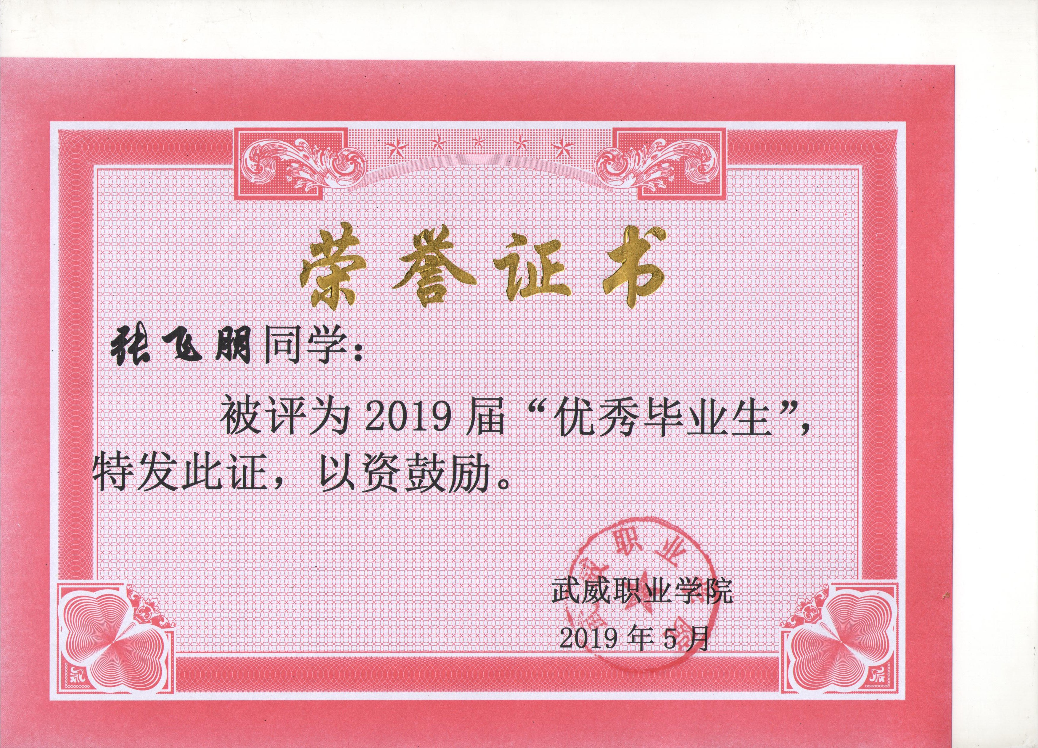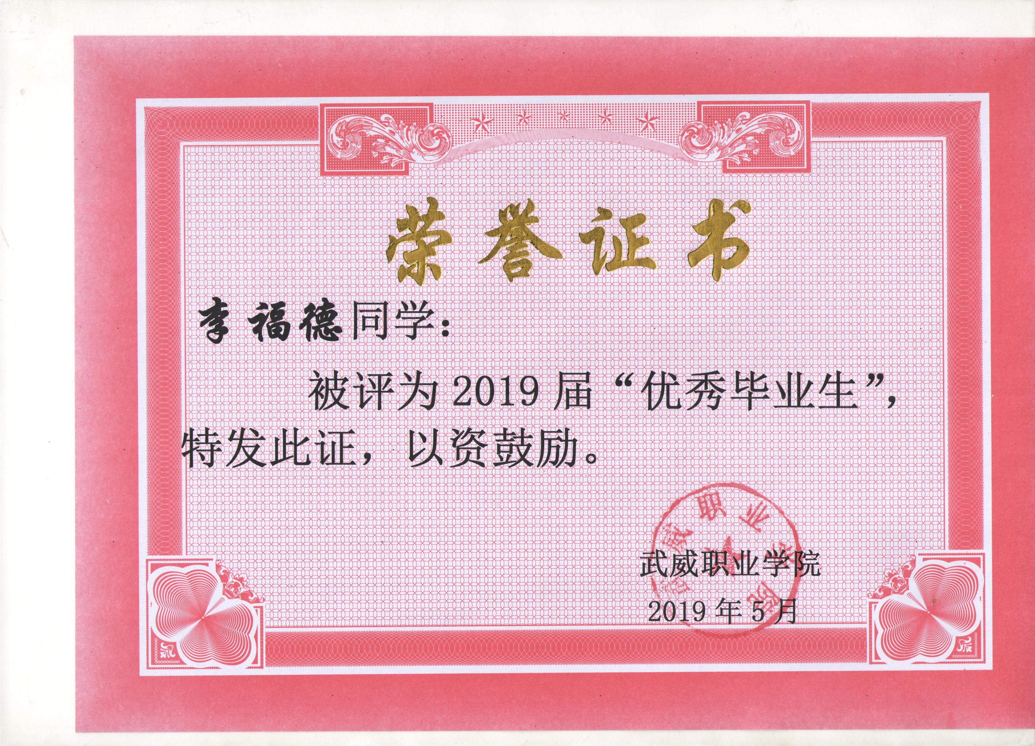 我系蔡少榮等19名同學(xué)榮獲武威職業(yè)學(xué)院2019屆“優(yōu)秀畢業(yè)生”榮譽(yù)稱號(hào)