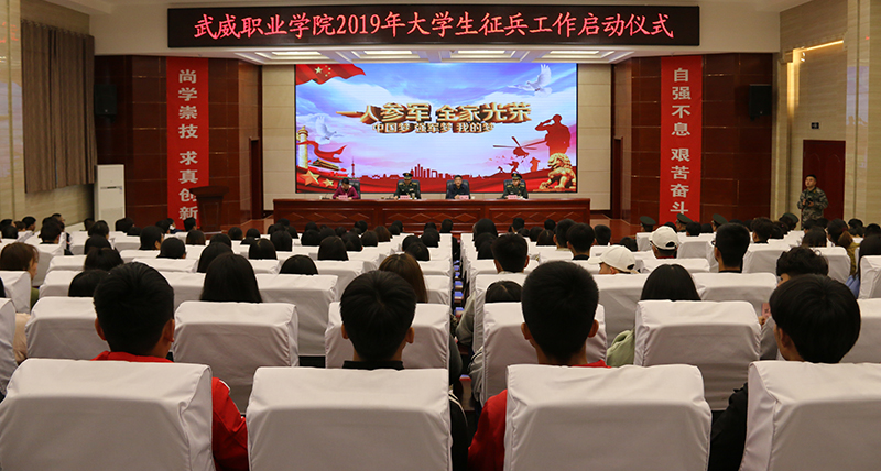 5月9日下午,學(xué)院2019年大學(xué)生征兵工作啟動(dòng)儀式在大學(xué)生活動(dòng)中心菁英廳舉行。武威軍分區(qū)司令員、市征兵領(lǐng)導(dǎo)小組副組長(zhǎng)張國(guó)輝大校,涼州區(qū)人武部部長(zhǎng)、涼州區(qū)征兵領(lǐng)導(dǎo)小組副組長(zhǎng)兼征兵辦公室主任闞延貴上校,學(xué)院黨委書(shū)記、院長(zhǎng)趙明,副院長(zhǎng)田迎春,武威軍分區(qū)動(dòng)員處、涼州區(qū)人武部干部,學(xué)院各系黨總支書(shū)記、輔導(dǎo)員及學(xué)生代表共計(jì)220余人參加了會(huì)議。會(huì)議由田迎春主持。