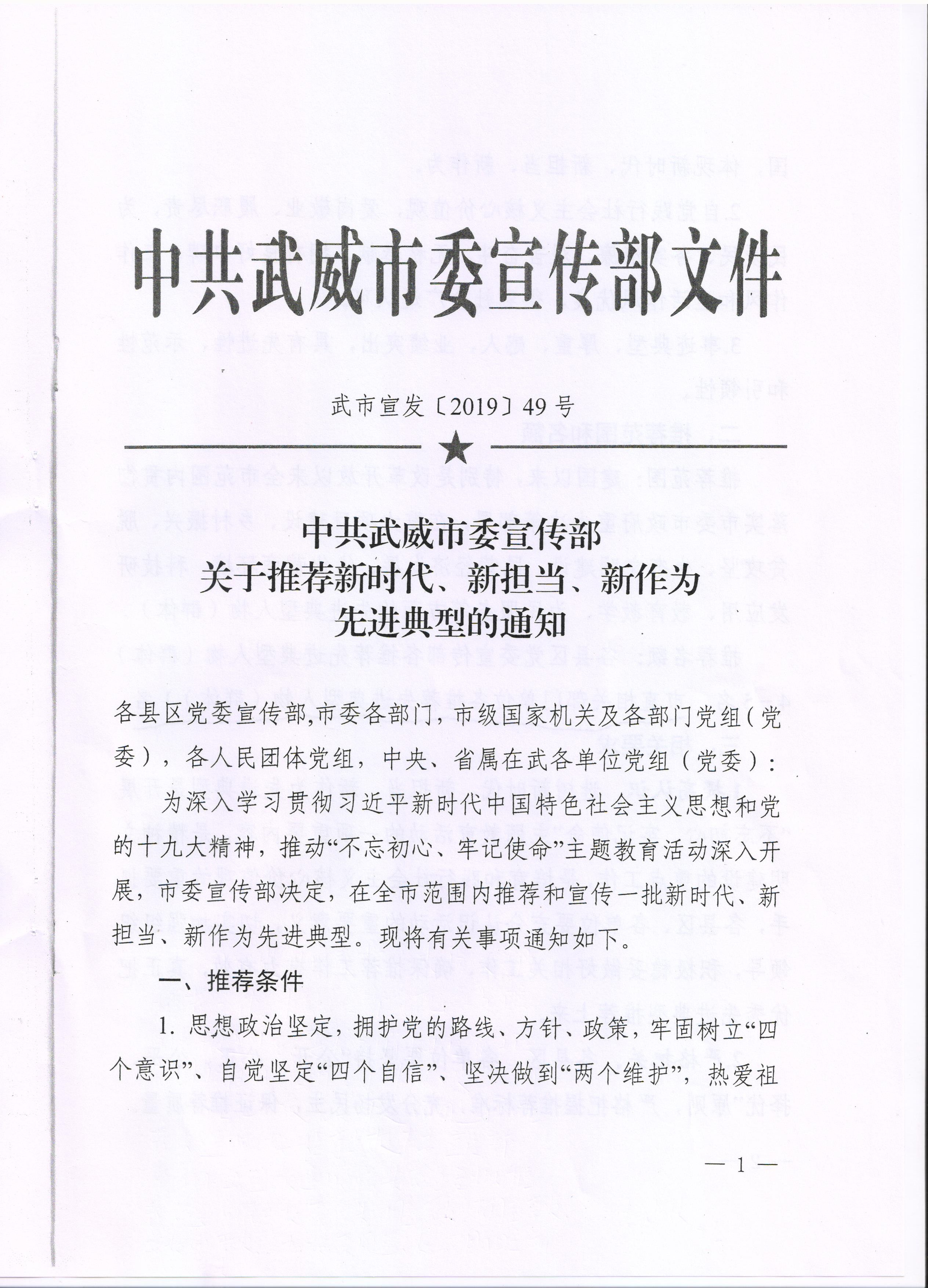 附件:《中共武威市委宣傳部關(guān)于推薦新時(shí)代、新?lián)?dāng)、新作為先進(jìn)典型的通知》