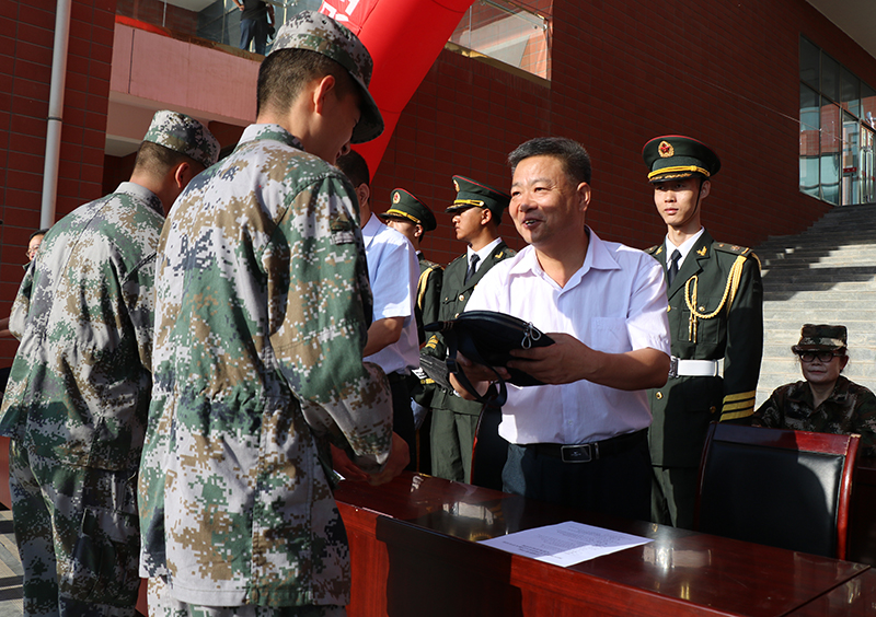 翟存祥代表學(xué)院向軍訓(xùn)教官表示衷心的感謝,祝愿應(yīng)征入伍的同學(xué)們?cè)诓筷?duì)進(jìn)一步譜寫(xiě)人生華章,并向參加軍訓(xùn)的全體同學(xué)致以親切的問(wèn)候。他指出,舉行大學(xué)生應(yīng)征入伍歡送儀式,就是要鼓勵(lì)大學(xué)生樹(shù)立“天下興亡,匹夫有責(zé)”的國(guó)防教育觀念,軍訓(xùn)旨在培養(yǎng)同學(xué)們的國(guó)防意識(shí)和愛(ài)國(guó)主義精神,培養(yǎng)同學(xué)們的組織紀(jì)律觀念,磨練同學(xué)們意志品德,培育和踐行社會(huì)主義核心價(jià)值觀!他要求參訓(xùn)學(xué)生要堅(jiān)守目標(biāo),做遵紀(jì)守法的優(yōu)秀戰(zhàn)士;要刻苦訓(xùn)練,做軍事訓(xùn)練的優(yōu)秀學(xué)子;要?jiǎng)?lì)志成才,做中國(guó)特色社會(huì)主義合格建設(shè)者和可靠接班人。他希望同學(xué)們牢記習(xí)近平總書(shū)記的殷殷囑托、諄諄教誨,不忘初心、牢記使命,勇于擔(dān)當(dāng)這個(gè)時(shí)代賦予的歷史責(zé)任,樹(shù)立遠(yuǎn)大理想,堅(jiān)持勵(lì)志勤學(xué),在激情奮斗中綻放青春光芒,立志成為中國(guó)特色社會(huì)主義偉大事業(yè)的有用人才。