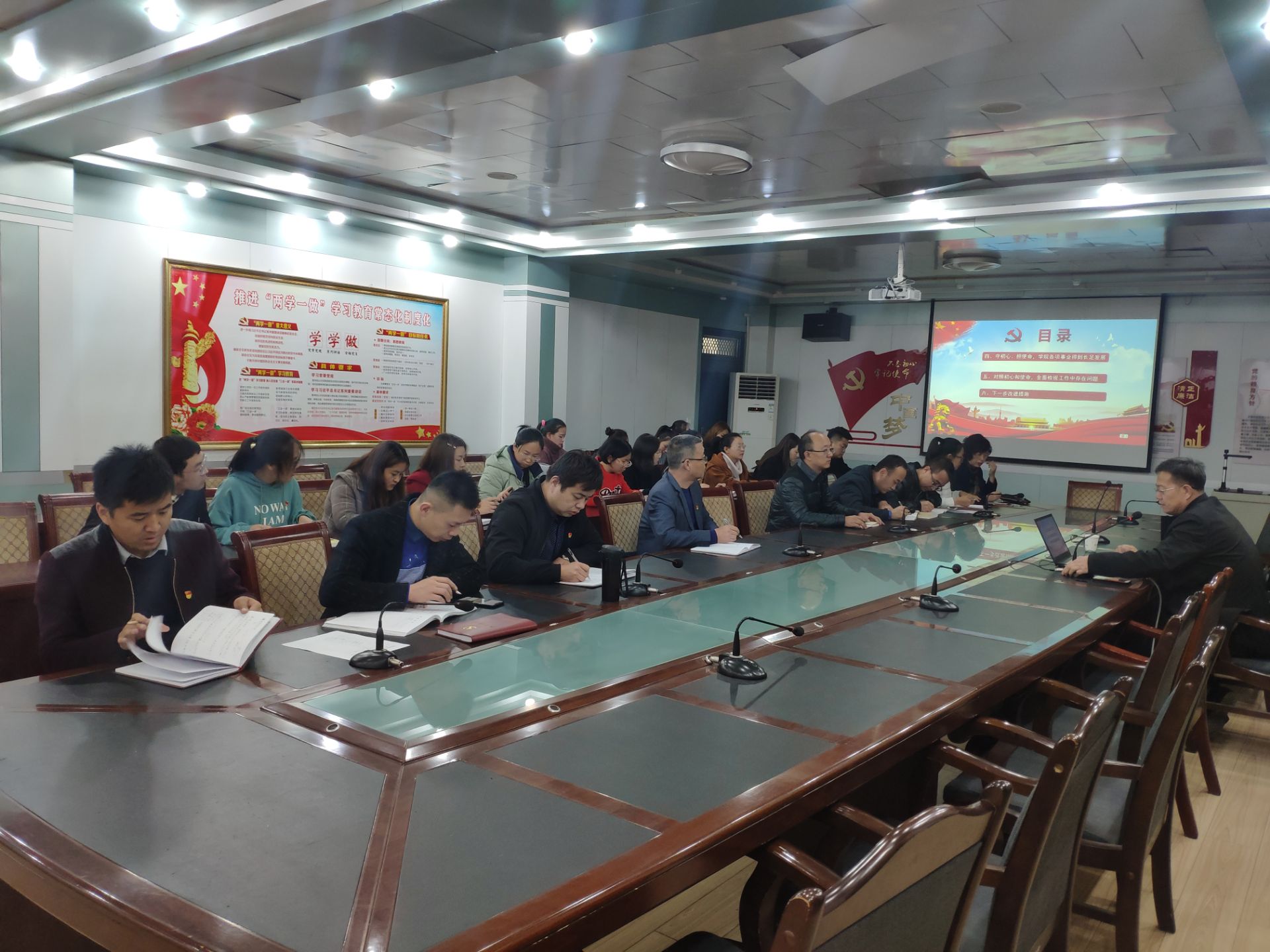 張開禮從“深刻認(rèn)識(shí)’不忘初心、牢記使命’主題教育的重大意義”、“強(qiáng)化理論武裝,進(jìn)一步深入學(xué)習(xí)貫徹習(xí)近平新時(shí)代中國(guó)特色社會(huì)主義”、“以習(xí)近平新時(shí)代中國(guó)特色社會(huì)主義思想為指導(dǎo),努力辦好人民滿意的高職教育”“守初心、擔(dān)使命,學(xué)院各項(xiàng)事業(yè)得到長(zhǎng)促發(fā)展”、“對(duì)照初心和使命,全面檢視工作中存在的問題”等五個(gè)方面,為全體與會(huì)黨員進(jìn)行了詳細(xì)的輔導(dǎo)講解。