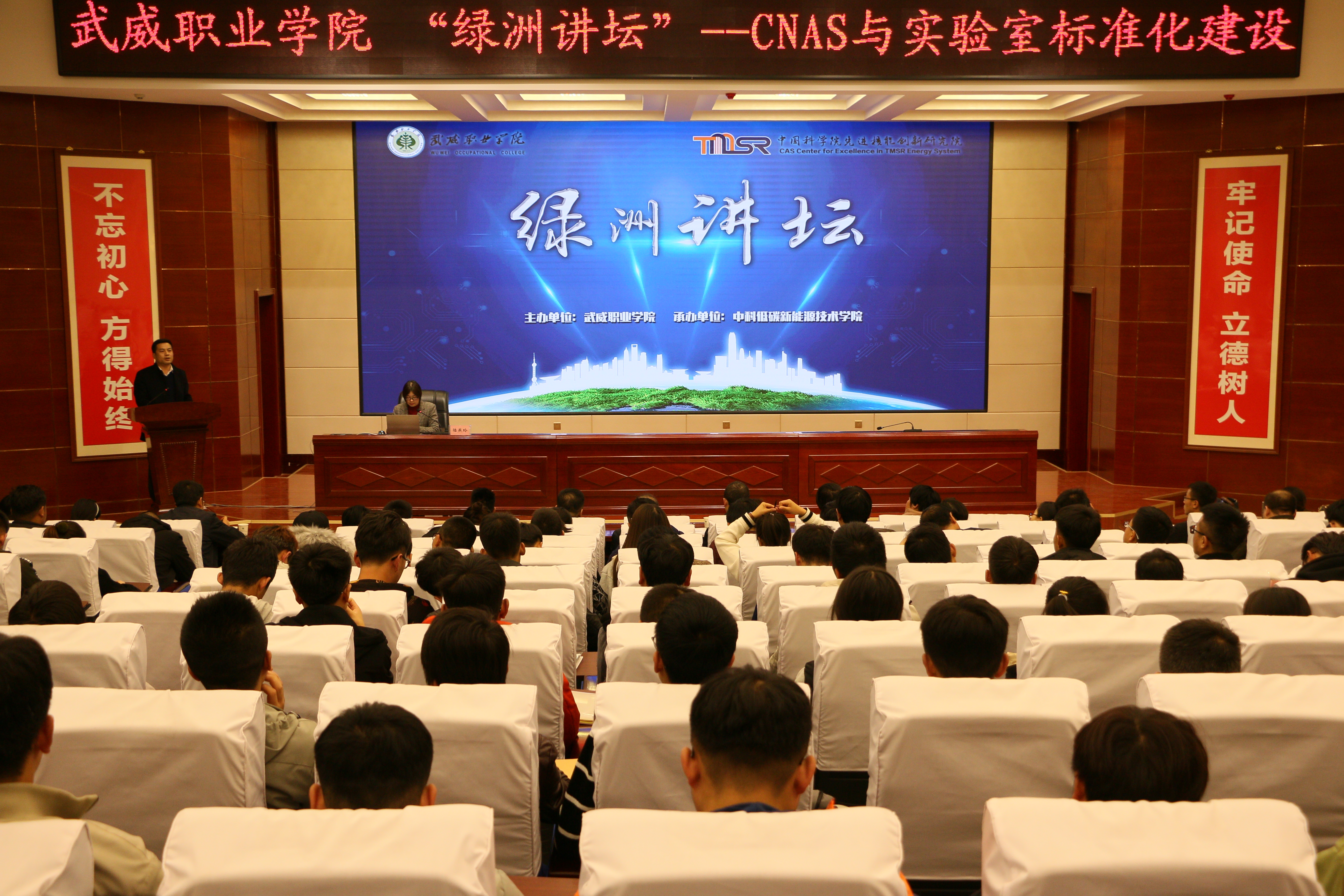 11月22日,武威職業(yè)學(xué)院“綠洲講壇”第30期在學(xué)院菁英廳舉行,本期活動(dòng)邀請(qǐng)到中科院上海應(yīng)用物理研究所研究員、全國(guó)專業(yè)標(biāo)準(zhǔn)化技術(shù)委員會(huì)委員陸燕玲博士作主題為“CNAS與實(shí)驗(yàn)室標(biāo)準(zhǔn)化建設(shè)”的報(bào)告。學(xué)院各系實(shí)驗(yàn)室管理員、實(shí)驗(yàn)課任課教師及中科低碳新能源技術(shù)學(xué)院師生代表共220人聆聽(tīng)了報(bào)告。本期講壇由能源工程系副主任黃述杰主持。