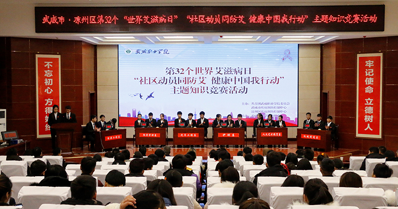 為持續(xù)深入推進大學生艾滋病預防教育工作,迎接第32個世界艾滋病日的到來, 12月1日晚,學院開展了艾滋病知識競賽活動,學院副院長王永緒、王守云,市疾控中心領(lǐng)導參加活動。此次活動由武威職業(yè)學院與武威市疾控中心聯(lián)合主辦,護理系承辦,活動的主題為“社區(qū)動員同防艾 .健康中國我行動”。學院團委及部分系老師,各系學生代表觀看了比賽。