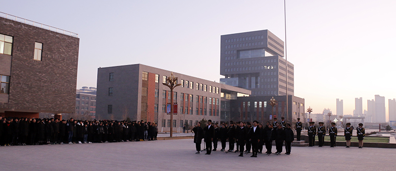 上午7時(shí)50分,國旗班踏著鏗鏘有力的步伐步入升旗臺(tái),鮮紅的五星紅旗在雄壯的國歌聲中冉冉升起。警笛鳴響,在場師生肅立,為遇難同胞默哀致敬。26名學(xué)生代表深情朗誦《和平宣言》,代表學(xué)院全體師生發(fā)出莊嚴(yán)的和平宣言。