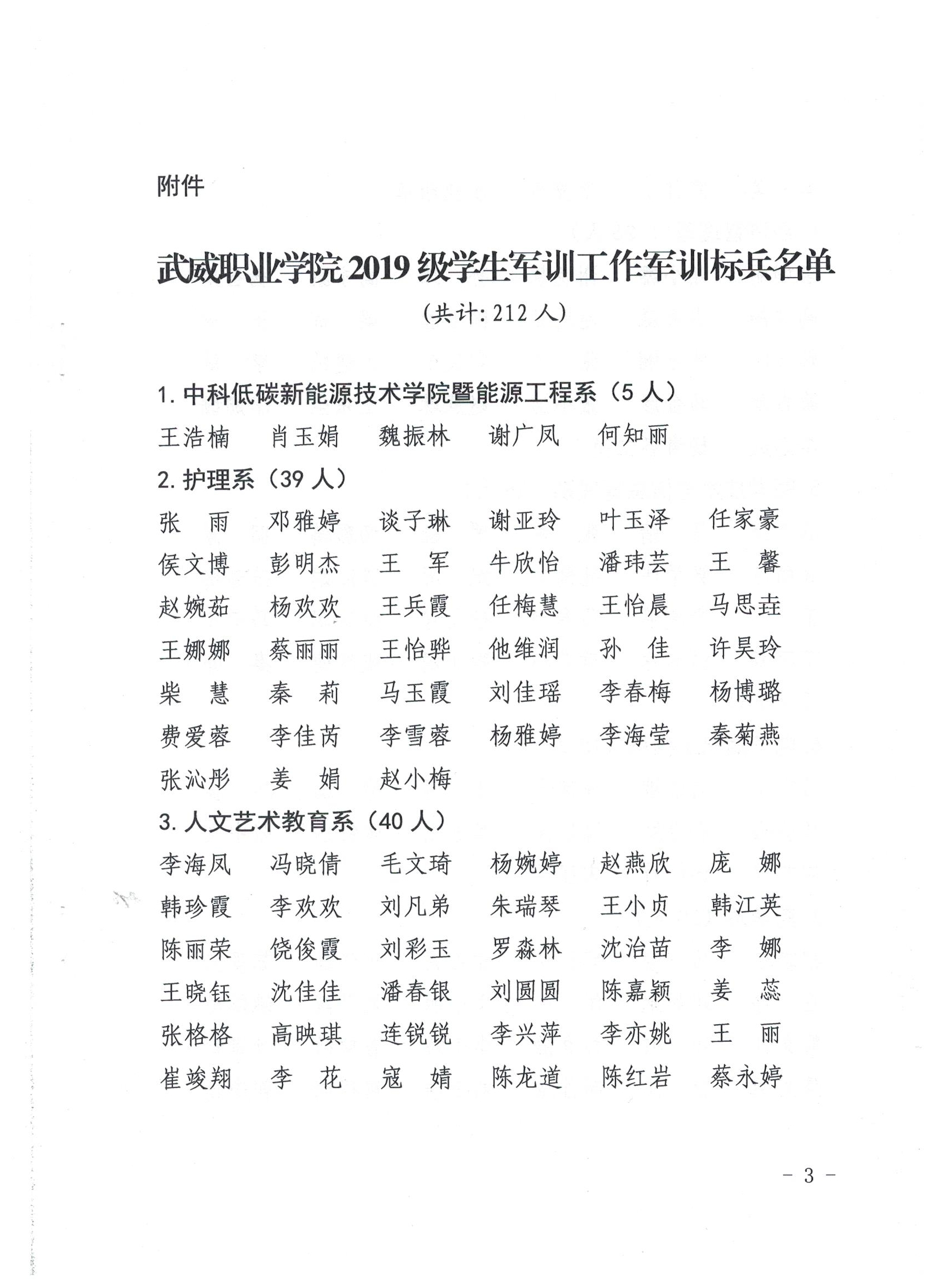 武威職業(yè)學(xué)院關(guān)于表彰2019級(jí)學(xué)生軍訓(xùn)工作軍訓(xùn)標(biāo)兵的決定