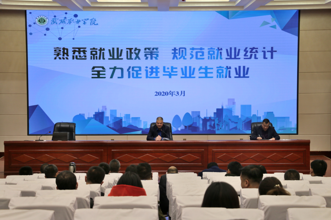 為進(jìn)一步促進(jìn)學(xué)院畢業(yè)生就業(yè)工作,加強(qiáng)就業(yè)工作服務(wù)水平,做好就業(yè)統(tǒng)計(jì)工作。根據(jù)院黨委安排部署,3月31日在大學(xué)生活動(dòng)中心菁英廳召開(kāi)了2020屆畢業(yè)生就業(yè)工作促進(jìn)會(huì)。黨委委員、副院長(zhǎng)王守云,各系黨總支書(shū)記、主任、副主任、就業(yè)干事、輔導(dǎo)員、2017級(jí)全體班主任及招就處、雙創(chuàng)中心工作人員共110人參加會(huì)議,招生就業(yè)處處長(zhǎng)蔡柱山主持會(huì)議。