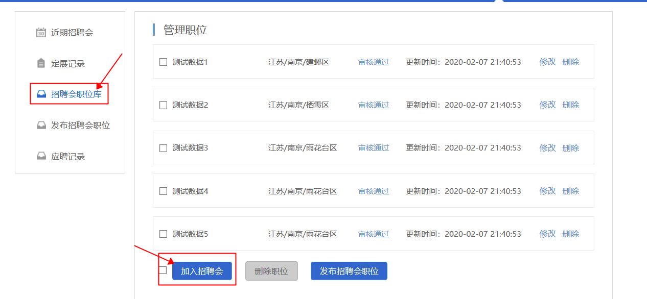 2.企業(yè)通過后臺(tái)中心“網(wǎng)絡(luò)招聘會(huì)”欄目——點(diǎn)擊發(fā)布招聘會(huì)職位(等待審核)——審核通過后,將“招聘會(huì)職位庫”中的職位加入到“武威職業(yè)學(xué)院2020屆醫(yī)藥衛(wèi)生類畢業(yè)生網(wǎng)絡(luò)視頻雙選會(huì)”,職位將在網(wǎng)絡(luò)招聘大廳中進(jìn)行展示。