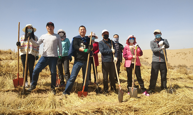 為認(rèn)真踐行綠水青山就是金山銀山理念,大力弘揚(yáng)八步沙“六老漢”當(dāng)代愚公精神,2020年4月8日,教學(xué)管理第一黨支部聯(lián)合現(xiàn)代農(nóng)業(yè)技術(shù)系、中科院武威所赴長城鄉(xiāng)開展“壓沙造林”主題黨日活動,全體黨員參加活動,以實(shí)際行動領(lǐng)悟和彰顯黨員教師的初心使命和責(zé)任擔(dān)當(dāng)。