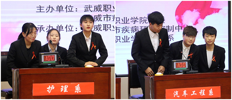為持續(xù)深入推進(jìn)大學(xué)生艾滋病預(yù)防教育工作,迎接第32個(gè)世界艾滋病日的到來, 12月1日晚,學(xué)院開展了艾滋病知識(shí)競賽活動(dòng),學(xué)院副院長王永緒、王守云,市疾控中心領(lǐng)導(dǎo)參加活動(dòng)。此次活動(dòng)由武威職業(yè)學(xué)院與武威市疾控中心聯(lián)合主辦,護(hù)理系承辦,活動(dòng)的主題為“社區(qū)動(dòng)員同防艾 .健康中國我行動(dòng)”。學(xué)院團(tuán)委及部分系老師,各系學(xué)生代表觀看了比賽。
