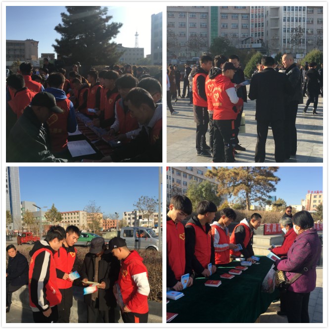 為進(jìn)一步助力全國文明城市創(chuàng)建,全面深入開展普法工作,切實提升廣大市民的尊法、用法和守法意識,營造濃厚的全民普法氛圍,11月15日上午,學(xué)院應(yīng)市司法局、團(tuán)市委的要求,派出機(jī)械制造系“依法治國”宣講團(tuán),到文化廣場參加武威市“法律進(jìn)家庭,服務(wù)解民憂”主題活動啟動儀式。