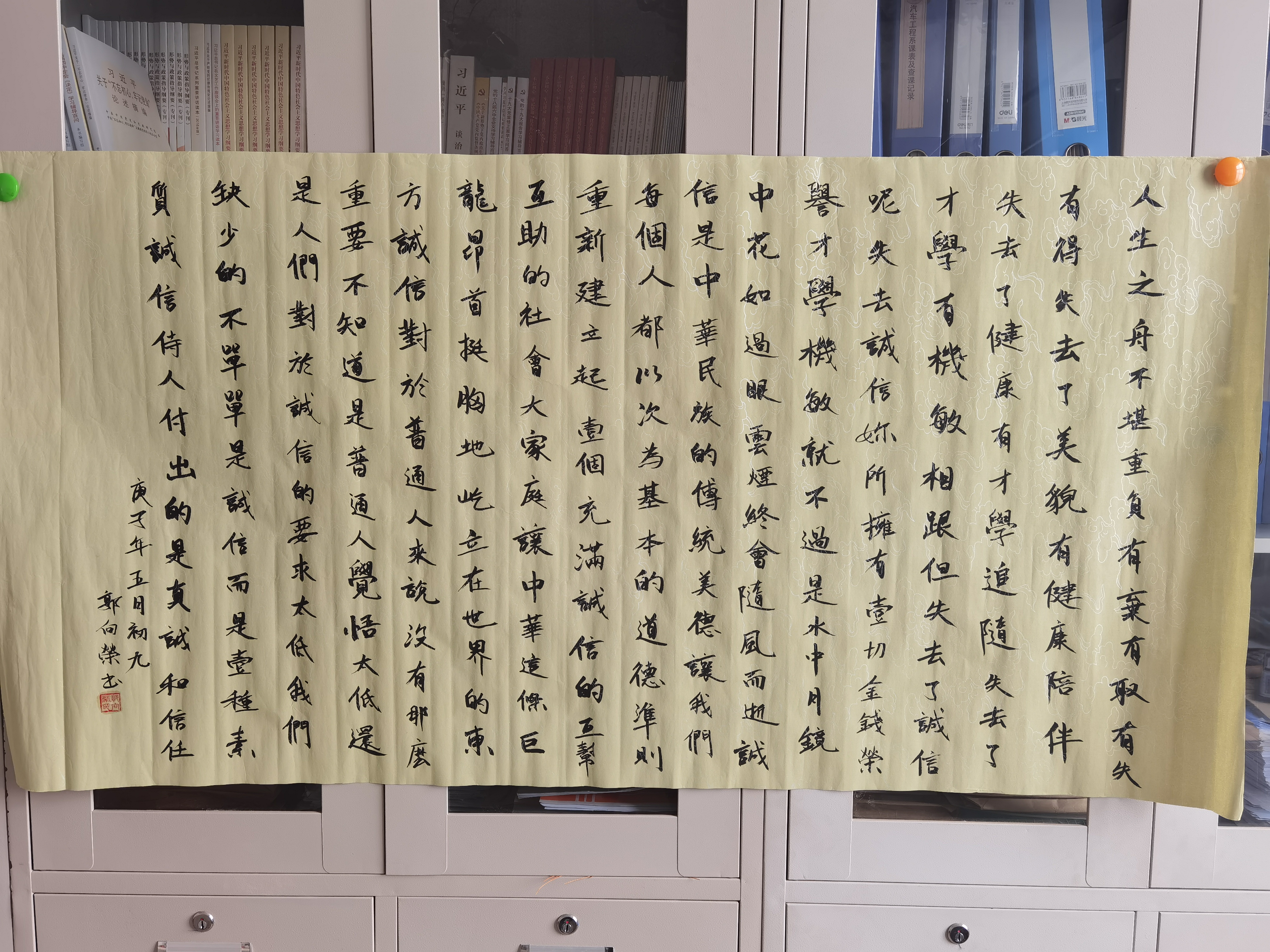 ? ? 為響應(yīng)學(xué)院“以誠至信、受益終生、誠信還貸 、感恩社會”倡議書倡議,汽車工程系于6月14日舉辦為期一周的“誠信”主題書畫比賽,學(xué)生踴躍參賽,經(jīng)過學(xué)生會評審,最終確定推薦5件作品參加學(xué)院比賽。