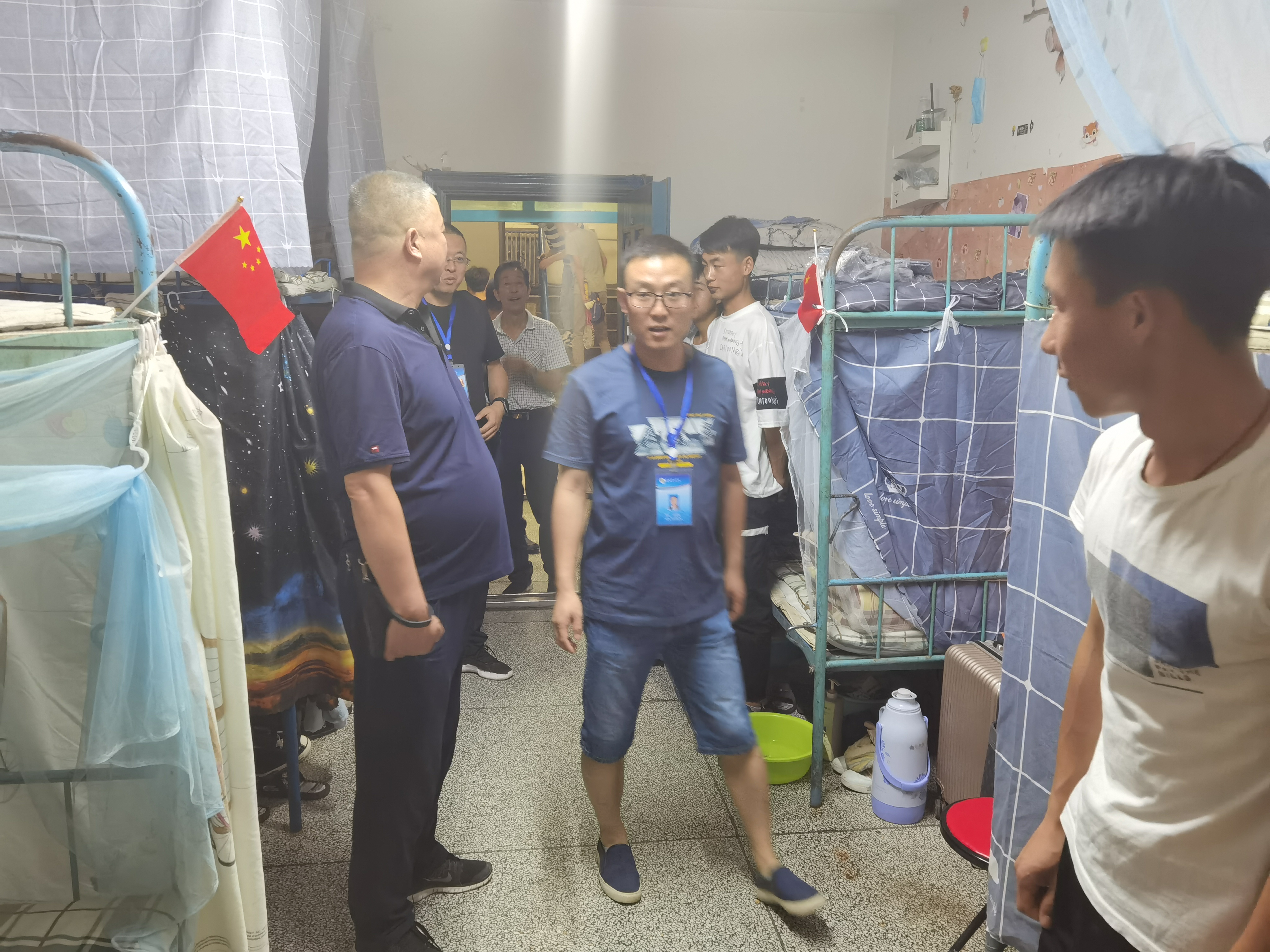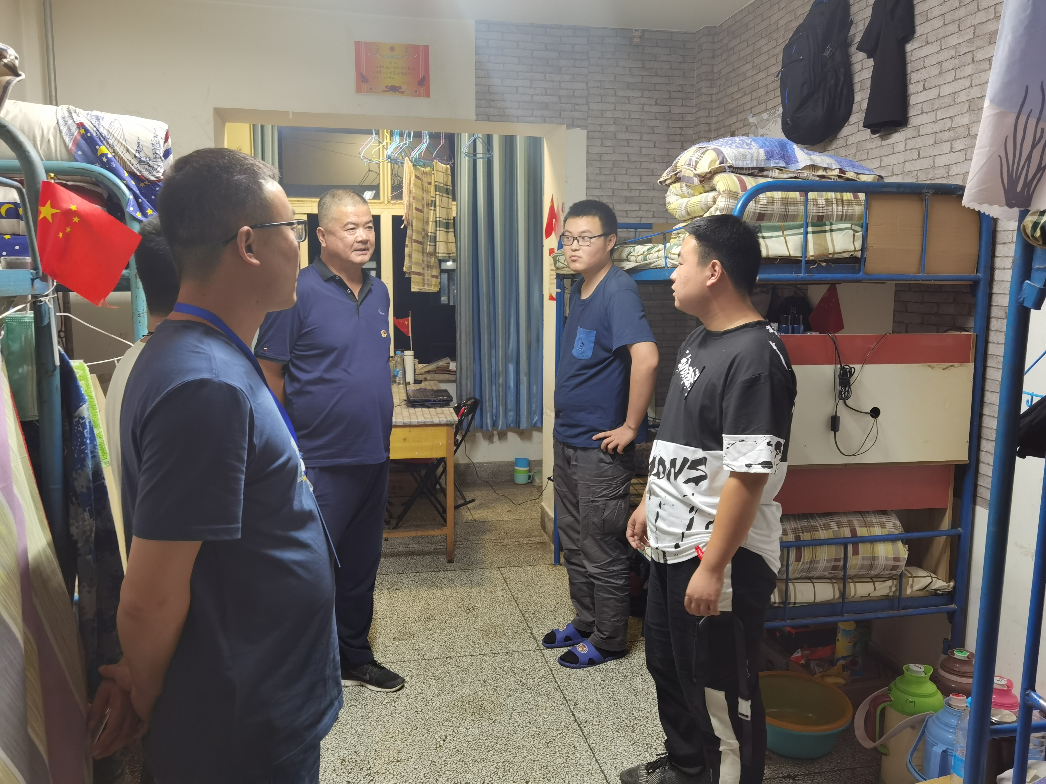 ? 6月26日晚,學(xué)院副院長王守云,保衛(wèi)處處長王政,學(xué)工處副處長高鵬堂,教師姚斌一行深入我系學(xué)生宿舍,實(shí)地視察和慰問我系返校學(xué)生生活狀態(tài)。