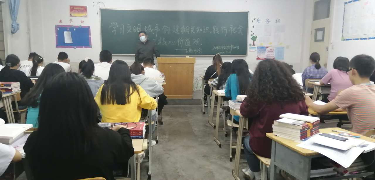 此次的主題班會,各班班主任引導各班同學講文明,樹新風,厲行節(jié)約,踐行社會主義核心價值觀,助力文明校園和文明城市創(chuàng)建,加深了同學們對社會主義核心價值觀內(nèi)容的認識和領悟。