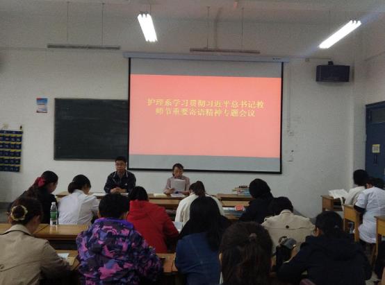 會(huì)上,護(hù)理系主任韓曉萍領(lǐng)學(xué)了《習(xí)近平總書(shū)記教育重要論述講義》,重溫了總書(shū)記教師節(jié)重要寄語(yǔ)及精神。她指出,全體教職員工要牢記習(xí)近平總書(shū)記“不忘立德樹(shù)人初心,牢記為黨育人、為國(guó)育才使命”的責(zé)任擔(dān)當(dāng),積極探索,在教書(shū)育人的崗位上不斷作出新的重大貢獻(xiàn)。她要求,每位教職員工撰寫(xiě)一篇學(xué)習(xí)心得體會(huì),提高認(rèn)識(shí),牢記使命,立足實(shí)際,為黨和國(guó)家培育社會(huì)主義建設(shè)者和接班人。