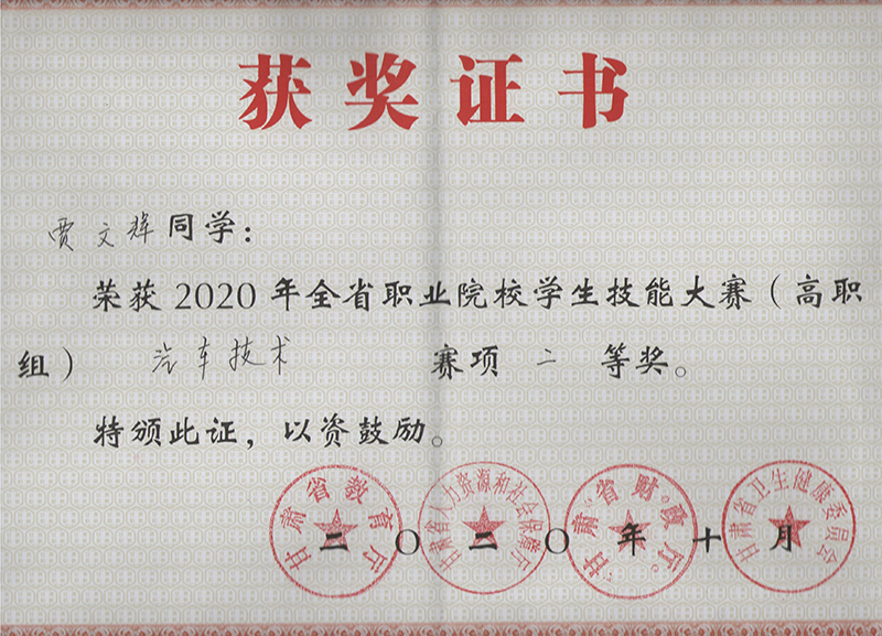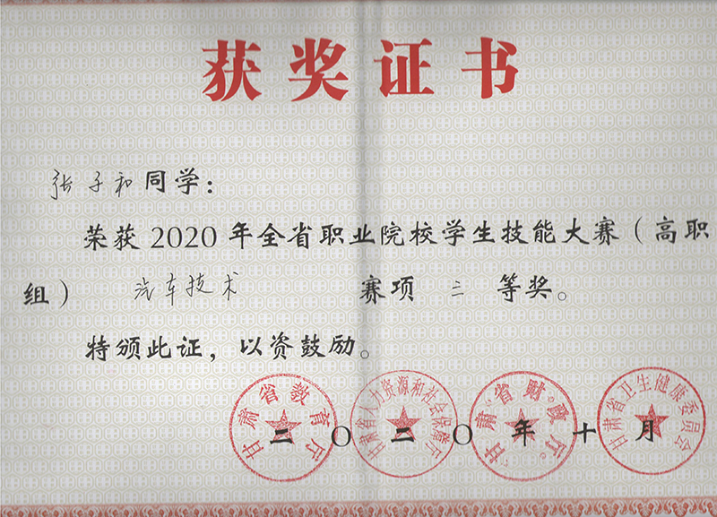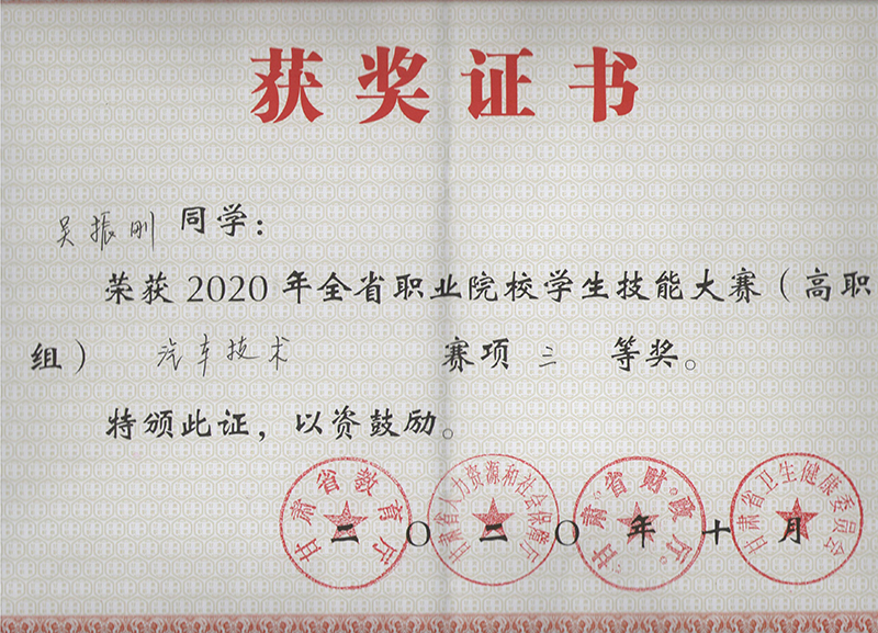 汽車工程系學生在2020年甘肅省職業(yè)院校學生技能大賽汽車技術(shù)賽項中獲獎
