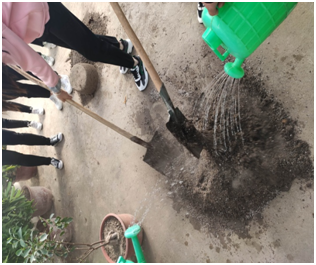 種植體驗(yàn)活動前,為了讓學(xué)生更好地了解種植知識,張老師給同學(xué)們講解了植物種植的條件、如何根據(jù)季節(jié)選擇種植的種類,以及育苗、澆水、施肥、防蟲過程中的注意事項(xiàng)。在活動中,學(xué)生與老師合作完成種菜任務(wù),一起探討種植經(jīng)驗(yàn)、勞動技能。